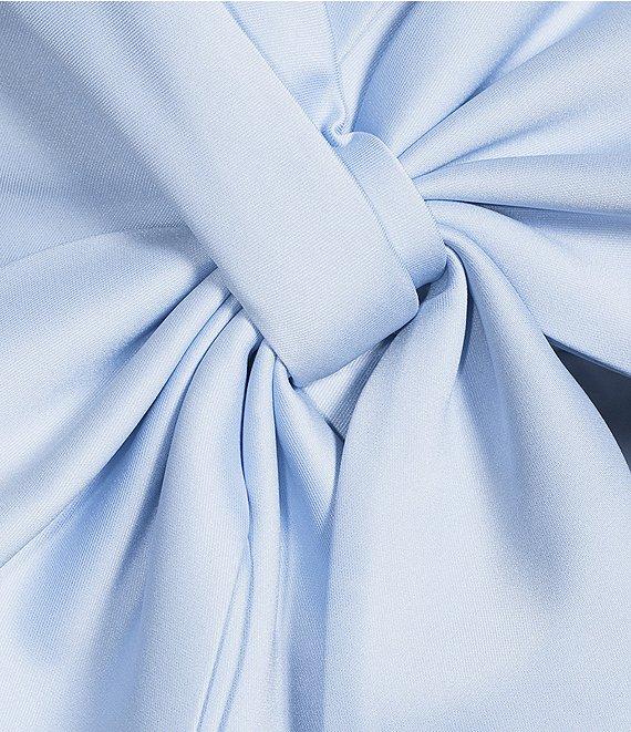 From Belle by Badgley Mischka, this dress features: Woven fabrication Sheath silhouette Strapless neckline Sleeveless Bow front detail Center zip back closure Fully lined Polyester/spandex Dry clean Imported.
