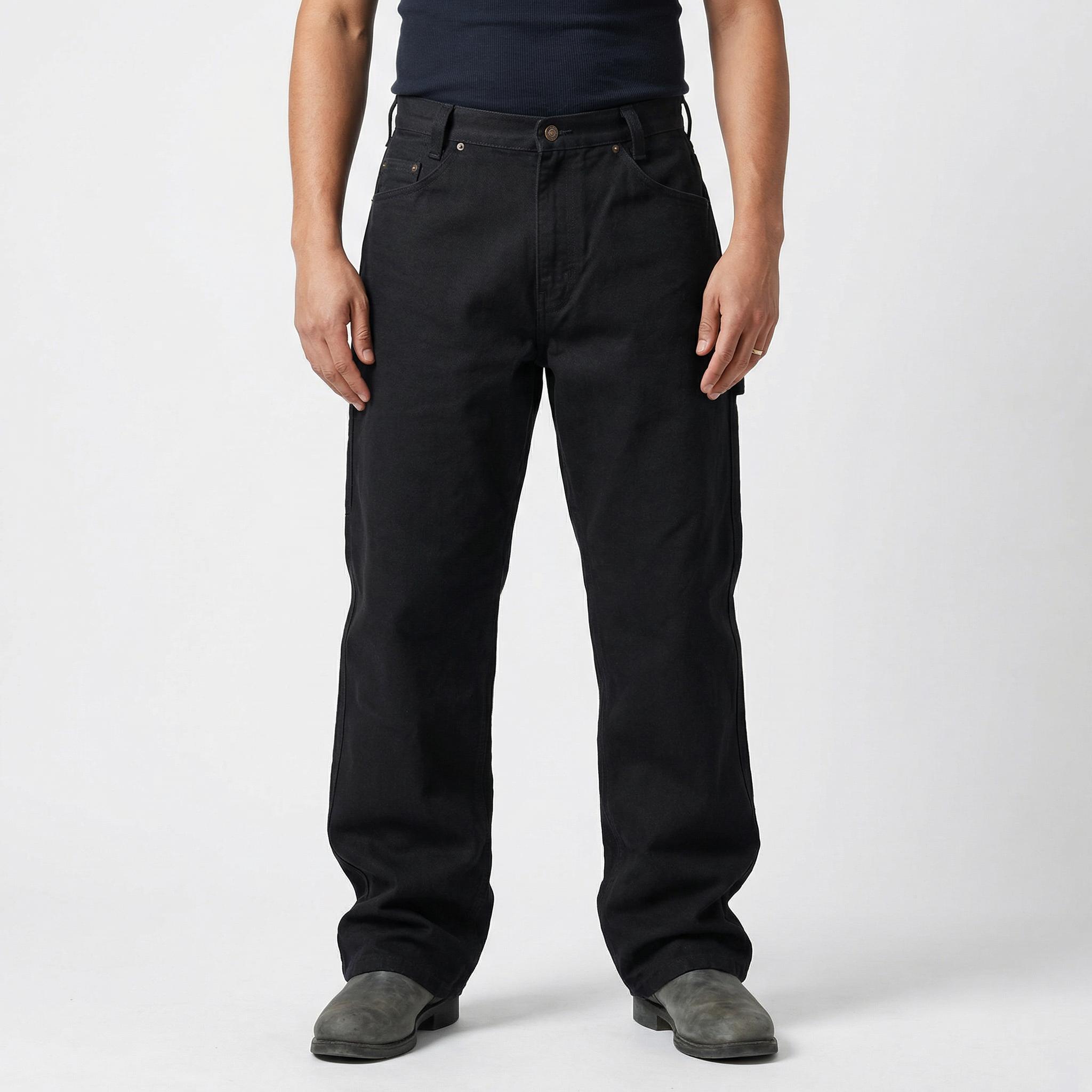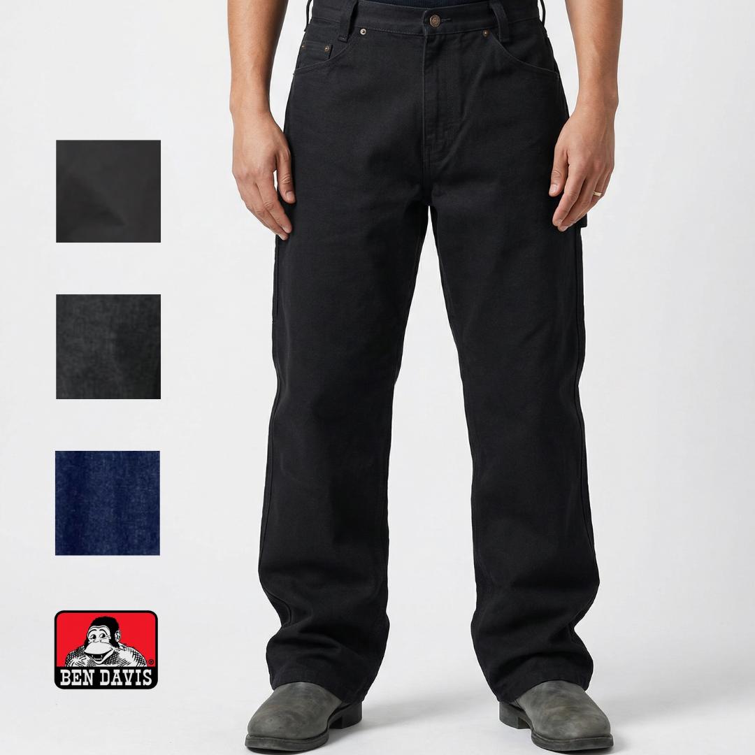 14-oz. Heavyweight Denim, 100% Cotton Regular Fit (Length shrinks to specified size after washing) Ben Davis button and zip fly closure Brass rivets at stress points 2 front slash pockets, 2 back patch pockets, 2 utility pockets Hammer loop Machine Warm Wash, Tumble Dry Warm Country of Origin: Imported The Ben Davis Carpenter's Pants are the perfect blend of comfort and durability. Made from heavyweight 100% cotton fabric, these pants are designed to withstand even the toughest jobs. With multiple pockets, including two side pockets, two back pockets, and two utility pockets, as well as a hammer loop on the left leg, you'll have all the storage space you need for your tools and accessories. The relaxed fit through the hips, thighs, and knees ensures a full range of motion, allowing you to move with ease and work in comfort all day long.