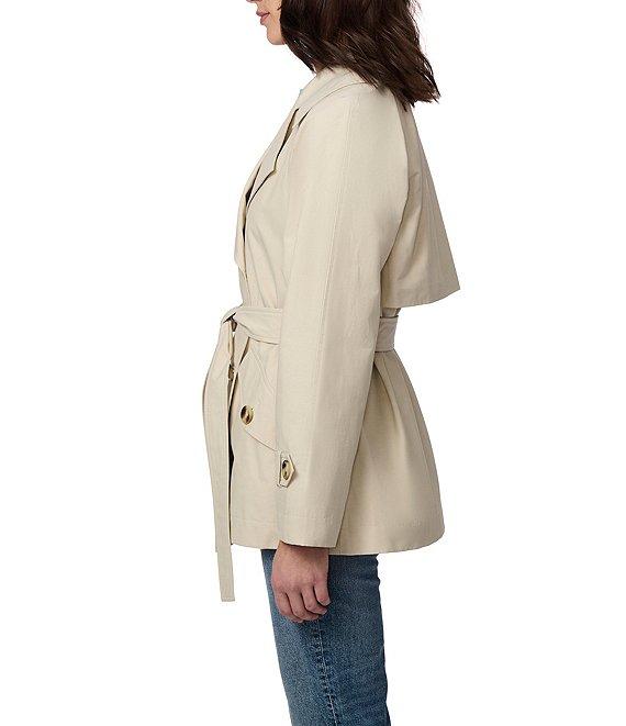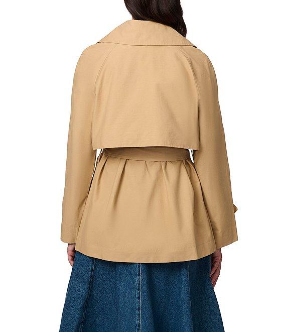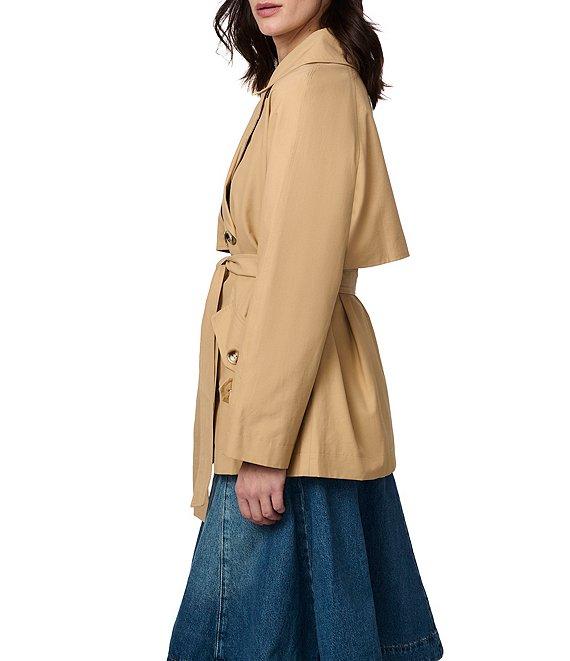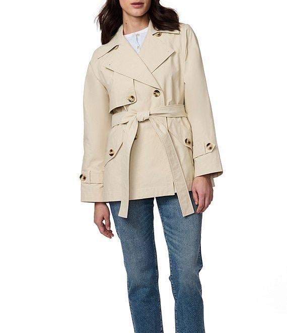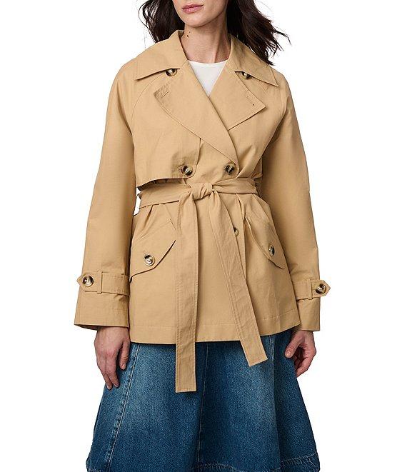 From Bernardo, this jacket features: Waxed woven fabrication Shirt collar lapel neckline Long sleeve tab with button Button chest flap anchor Two welt pocket under flap Self tie belt Semi-fitted Water repellent Light weight Fully lined Straight hemline Button front closure Approx. 28.75" length Cotton/recycled nylon; lining: polyester Machine wash Imported.