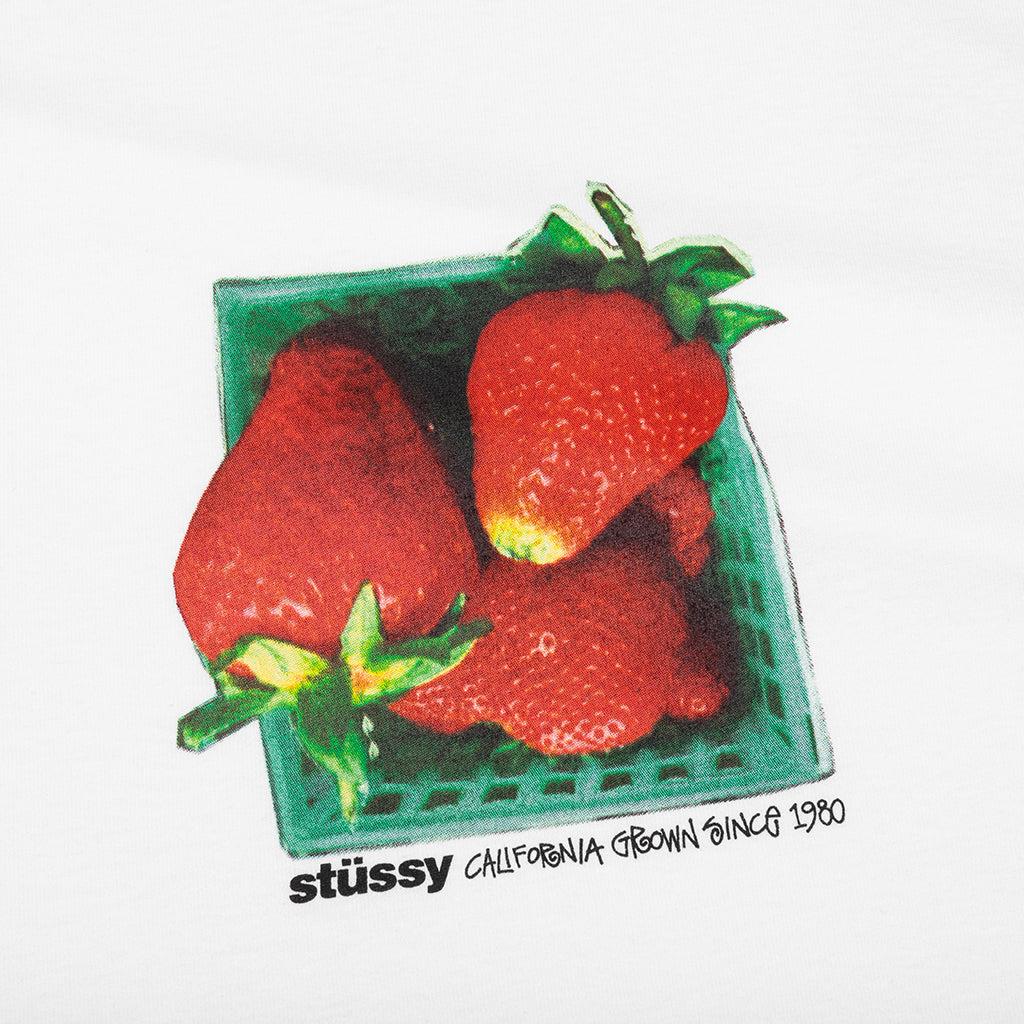 The Berries Tee by Stüssy is made entirely from cotton and features a ribbed crewneck for comfort. Designed to run large, this tee offers a relaxed fit that is perfect for casual wear. A screen-printed strawberries graphic is showcased on the front, adding a stylish touch to your everyday look. 100% Cotton Midweight, 220gsm Relaxed fit Ribbed crewneck Screen-printed graphics Style No: 1905108-WHIT