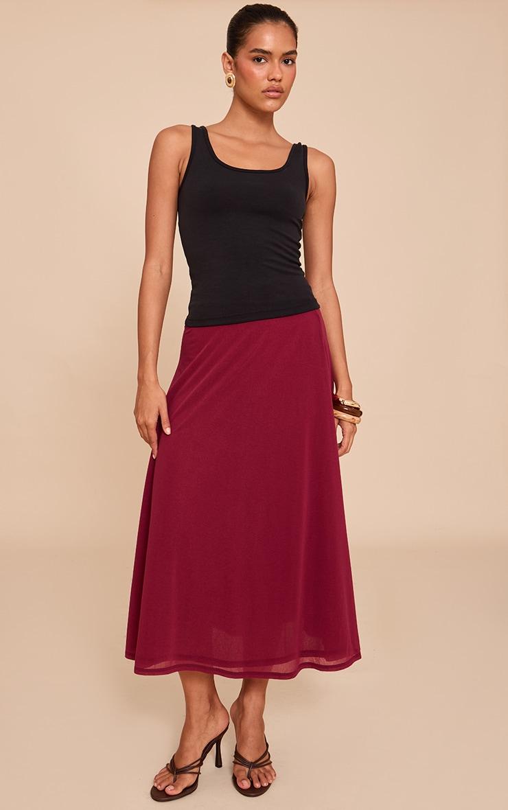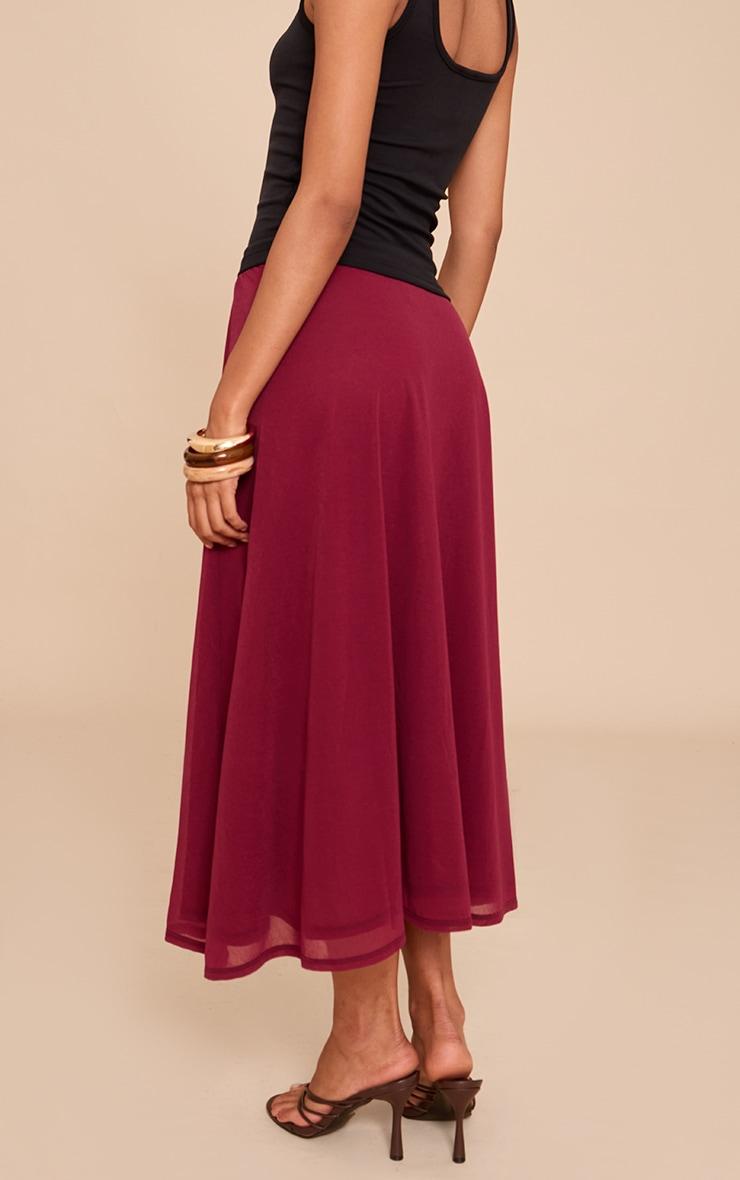 Make a statement in this berry double layer chiffon floaty midaxi skirt. Tailored from deep red material, this skirt has a double layer design with a chic midaxi length fit. For an effortlessly chic look, style it with a scoop neck vest, strappy kitten heels, resin bangles and your go-to gold earrings.Length approx 85cm/33.5inch (Based on sample size US 4)Model wears size UK 8/ EU 36/ AUS 8/ US 4Model Height - 5ft 7inchp]:!mb-4inch>Brand: PrettyLittleThingCategory: BottomsProduct type: Midaxi SkirtColor: BerryMaterial: Slinky JerseyOccasion: Evening