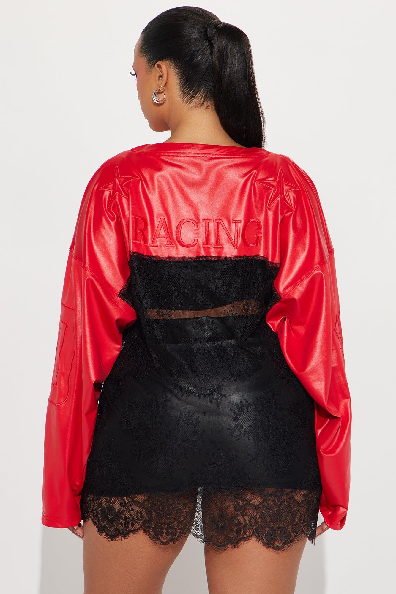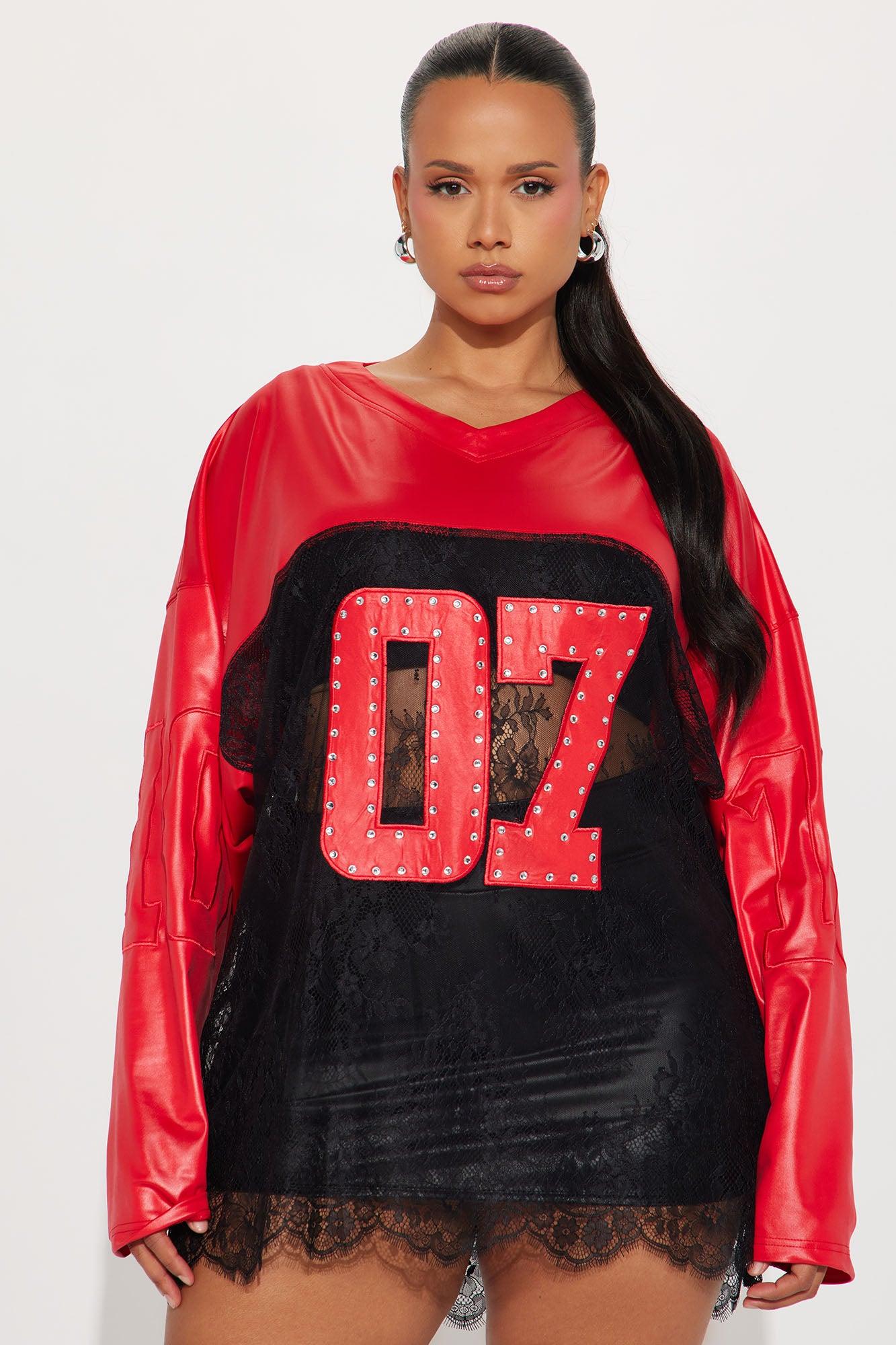 Best Of The Best Rhinestone Lace Jersey Top - Red Female