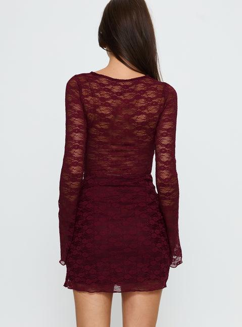 Best You Had Mesh Long Sleeve Mini Dress Burgundy