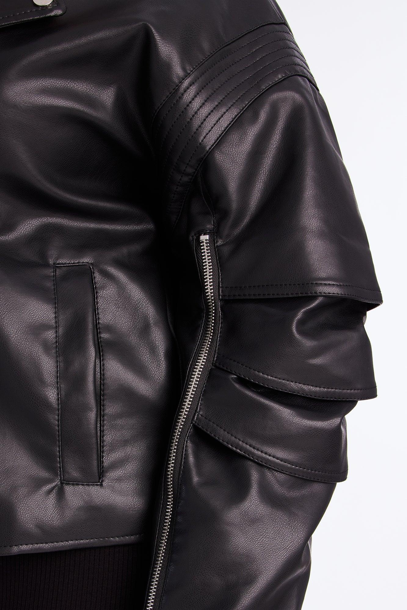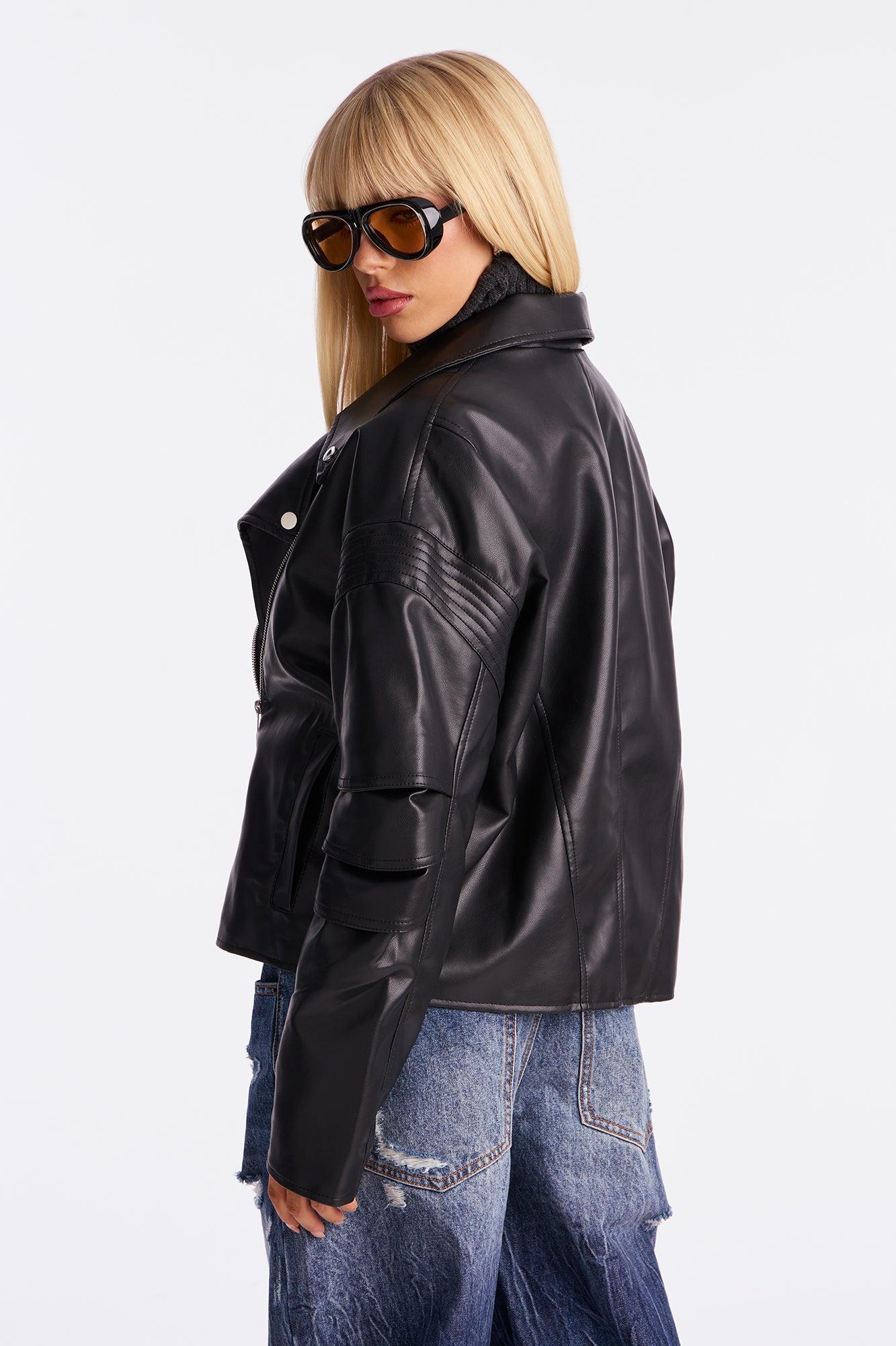 Bet On Me Oversized Faux Leather Moto Jacket - Black Female