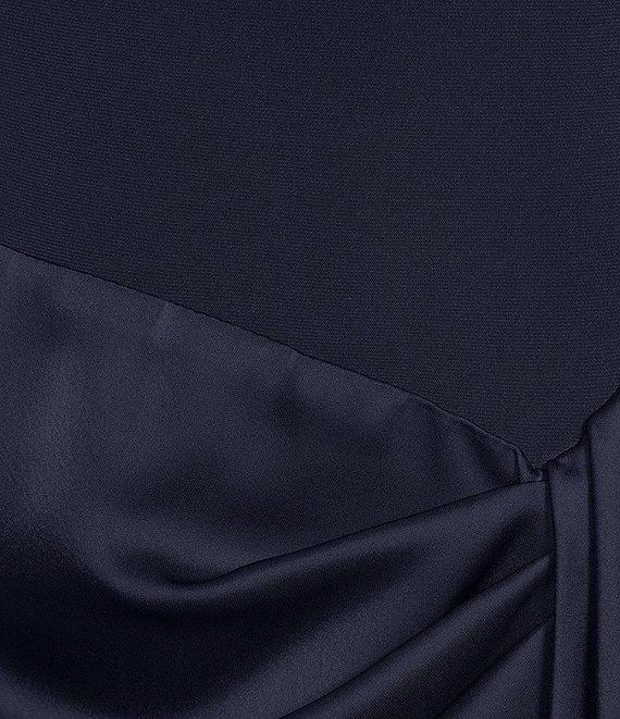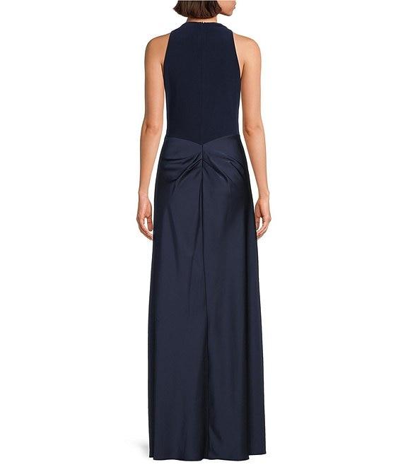 Betsy & Adam Halter Cowl Neck Ruched Satin Faux Wrap Gown
