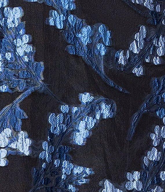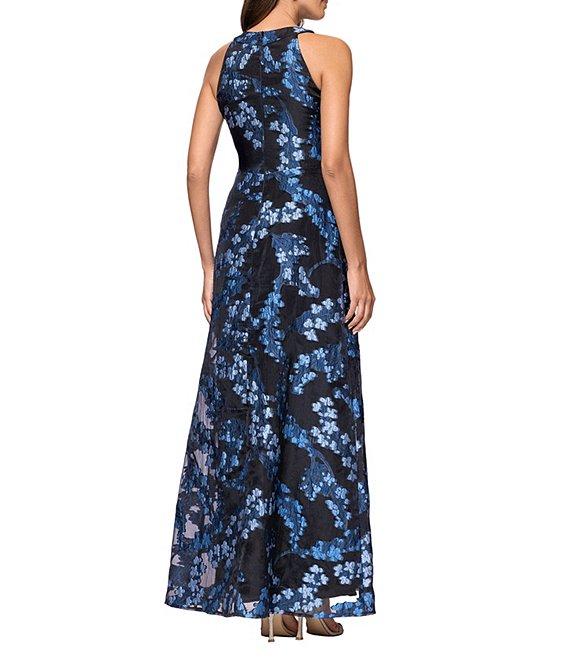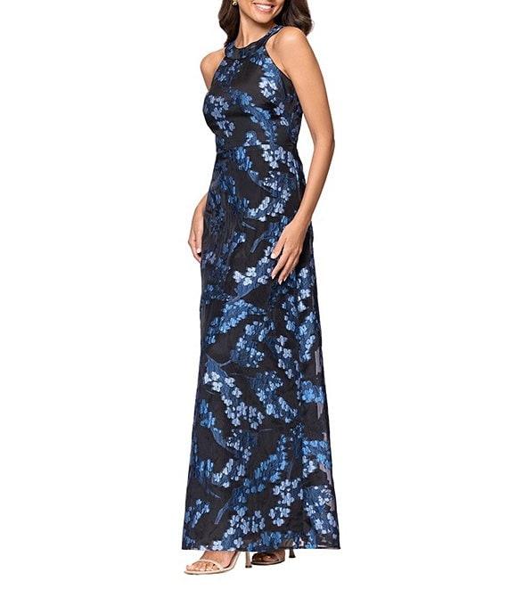 Betsy & Adam Petite Size Brocade Organza Long Halter Floral Sleeveless Dress