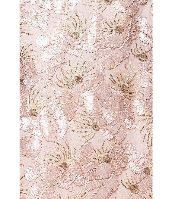 Betsy & Adam Petite Size Floral Sequin Soutache Halter Sleeveless A-Line Gown