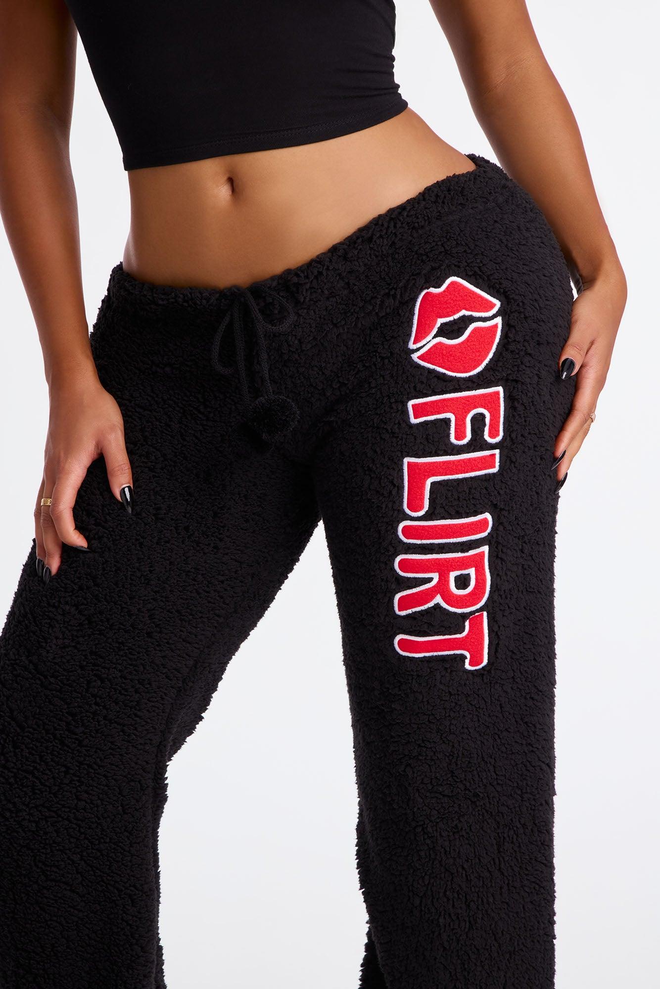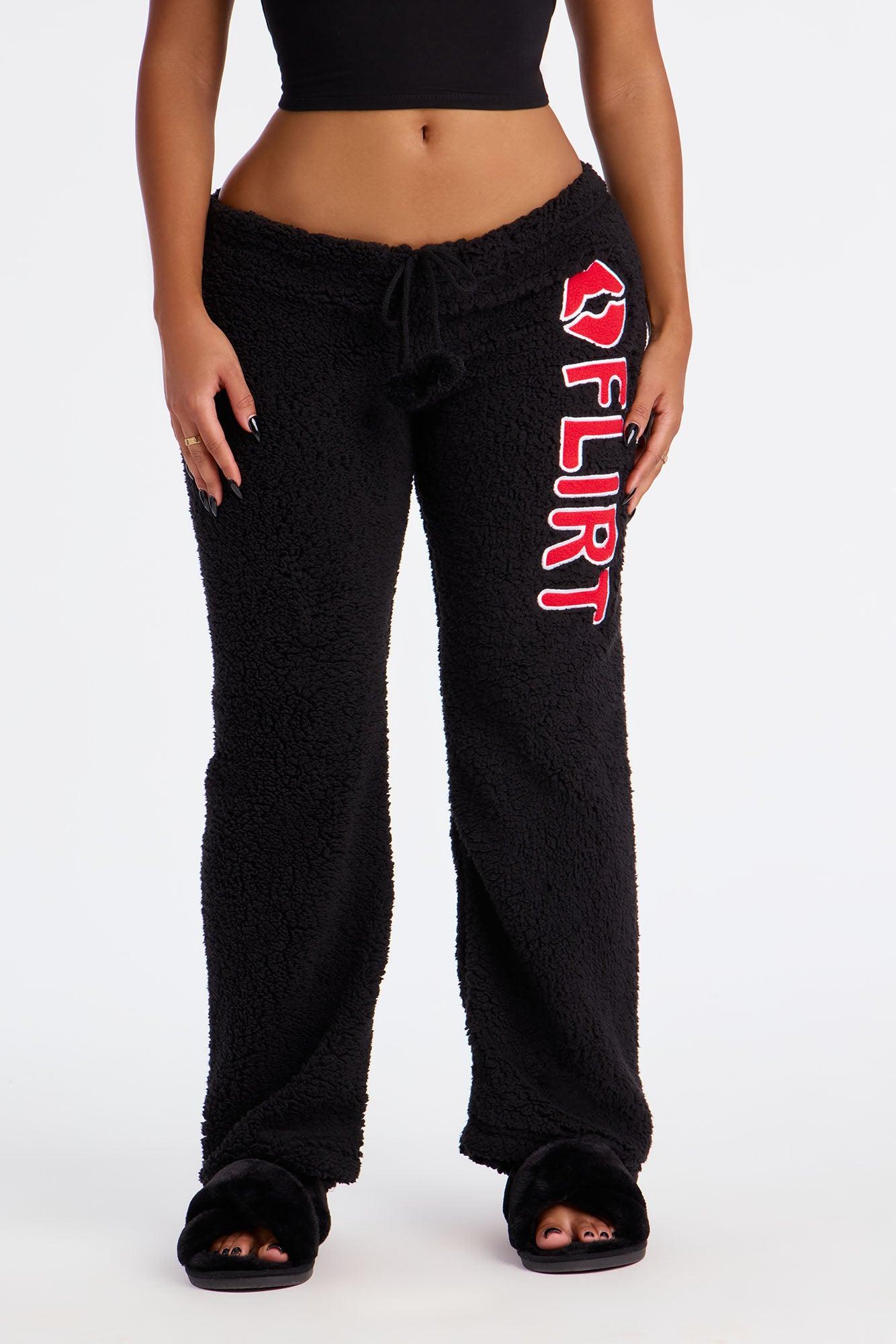 Big Flirt Embroidered Sherpa PJ Pants - Black Female