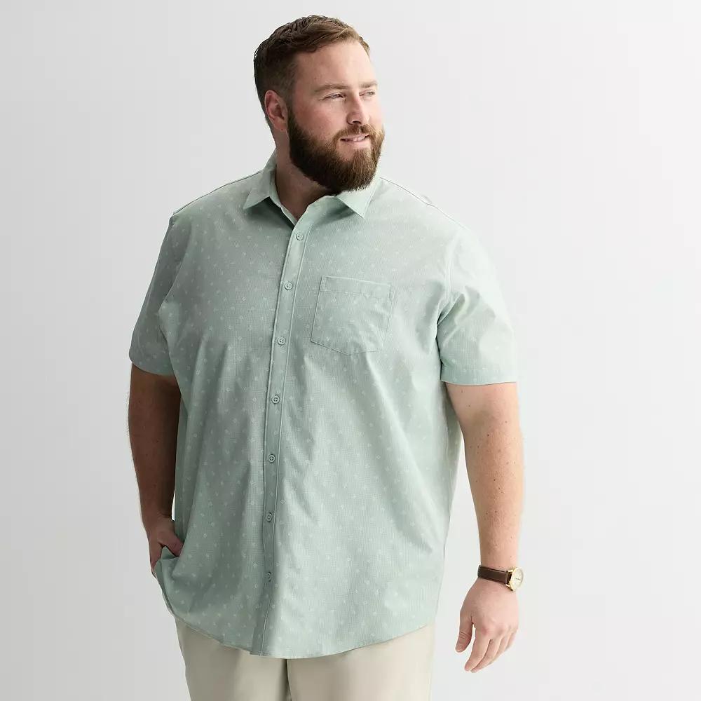 Elevate your casual look with this FLX woven shirt that effortlessly blends comfort and style. Perfect for those laid-back outings or spontaneous weekend adventures, it offers a relaxed fit that lets you move freely while looking sharp. Click on this MEN'S GUIDE to find the perfect fit and more! - https://www.kohls.com/feature/mens-apparel-guide.jsp. FEATURES: Standard untucked fit, Front chest pocket. FIT & SIZE: Regular fit, Rounded hemline. MATERIAL & CARE: 67% polyester, 30% recycled polyester, 3% spandex, Machine wash. DETAILS: Button front closure, Collared neckline, Short sleeves, Imported. Size: XXL Tall. Color: Blue Faded Floral. Gender: male. Age Group: adult.