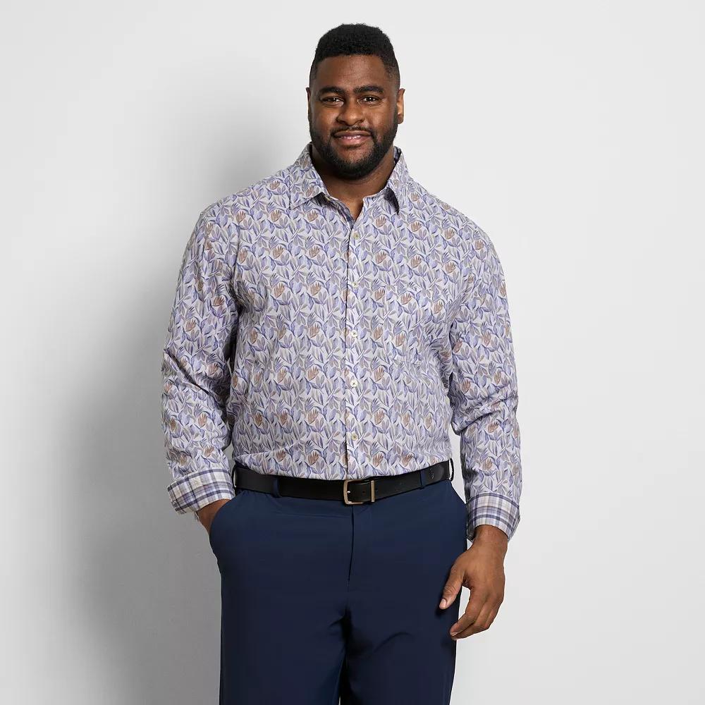 Update your wardrobe with this vibrant long sleeve shirt from Van Heusen. Featuring a halogen print and button tab cuffs, this design pairs effortlessly with jeans for a relaxing weekend or dress pants for an elevated outing. Click on this MEN'S GUIDE to find the perfect fit and more! - https://www.kohls.com/feature/mens-apparel-guide.jsp. FIT & SIZE: Classic fit. MATERIAL & CARE: Cotton, polyester, elastane, Machine wash. DETAILS: Button-front, Long sleeve, Button tab cuffs, Imported. Size: L Tall. Color: Halogen Blue. Gender: male. Age Group: adult. Material: COTTON / POLY.