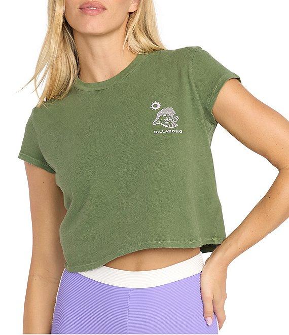 From Billabong, this t-shirt features: Round neckline Short sleeves "Billabong" logo and "waves" character graphic on the front "Waves Are Like The Ocean's High Fives" verbiage, a "wave" character graphic and "Billabong" logo on the back Pullover styling Pigment-dyed cotton knit jersey Machine wash/tumble dry Imported.