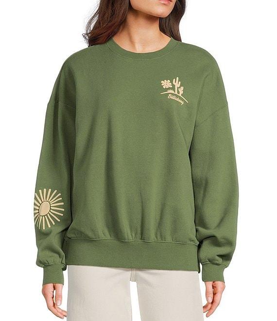 From Billabong, this sweatshirt features: Crew neckline Long sleeves "Billabong" logo and iconic desert graphic on the front Desert graphic across the back Pullover styling Cotton/polyester garment, pigment-dyed brushed fleece Machine wash/tumble dry Imported.