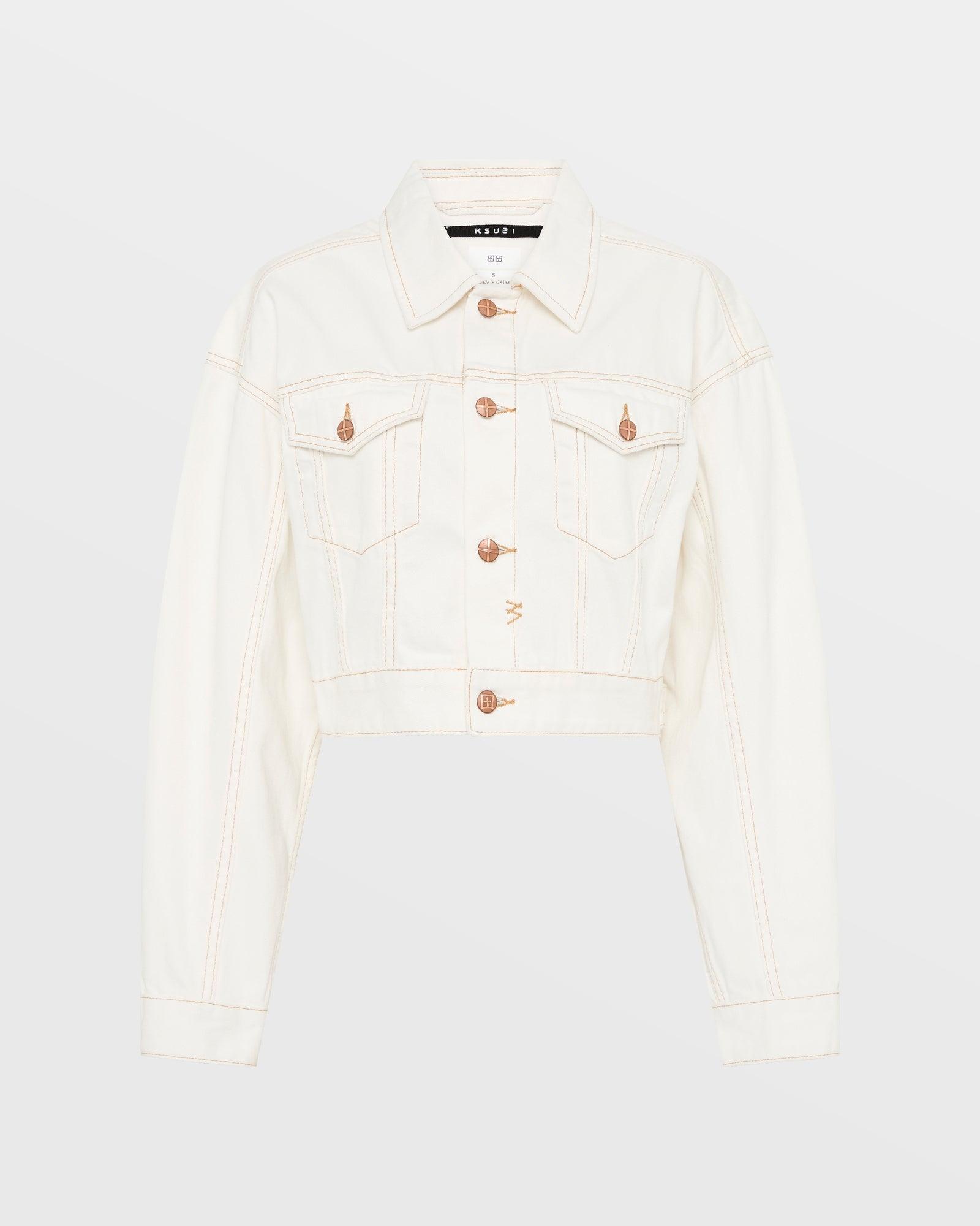 The Billie Jacket Sugar Rush is a cropped trucker jacket constructed from premium rigid denim in our custom sugar rush colourway. This is a boxy style with classic denim detailing and features contrast tobacco stitching and Ksubi branding.Cool machine wash with like colours, wash inside out, do not bleach, remove promptly after wash, do not tumble dry, cool iron on reverse, do not iron directly onto prints or metal hardware, colour may transfer onto other garments and upholstery.