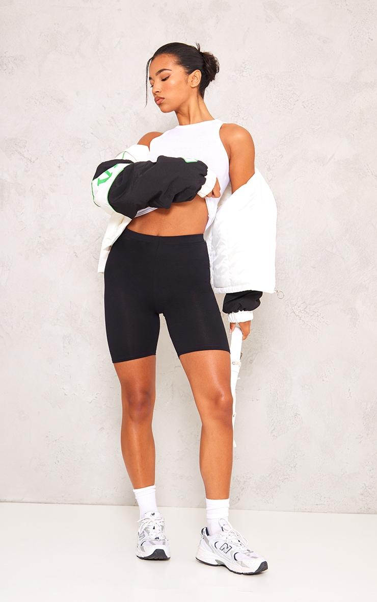 The bike short: a foundational piece for the modern wardrobe, now rendered in a considered cotton blend. These black shorts offer both structure and comfort, providing a versatile base for myriad looks. The close fit allows for confident layering; consider them beneath a tailored blazer for a sharp, of-the-moment silhouette. Their essential nature welcomes experimentation – try pairing them with a sculptural knit and barely-there heels for an elevated take on off-duty dressing. Alternatively, explore our selection of pants to discover complementary styles. Length approx 51cm/20inch (Based on a sample size UK 8) Model wears size UK 8/ EU 36/ AUS 8/ US 4Model Height - 5ft 7inchp]:!mb-4inch>Brand: PrettyLittleThingCategory: BottomsProduct type: Bike ShortsColor: BlackMaterial: Cotton JerseyDesign: PlainOccasion: Day