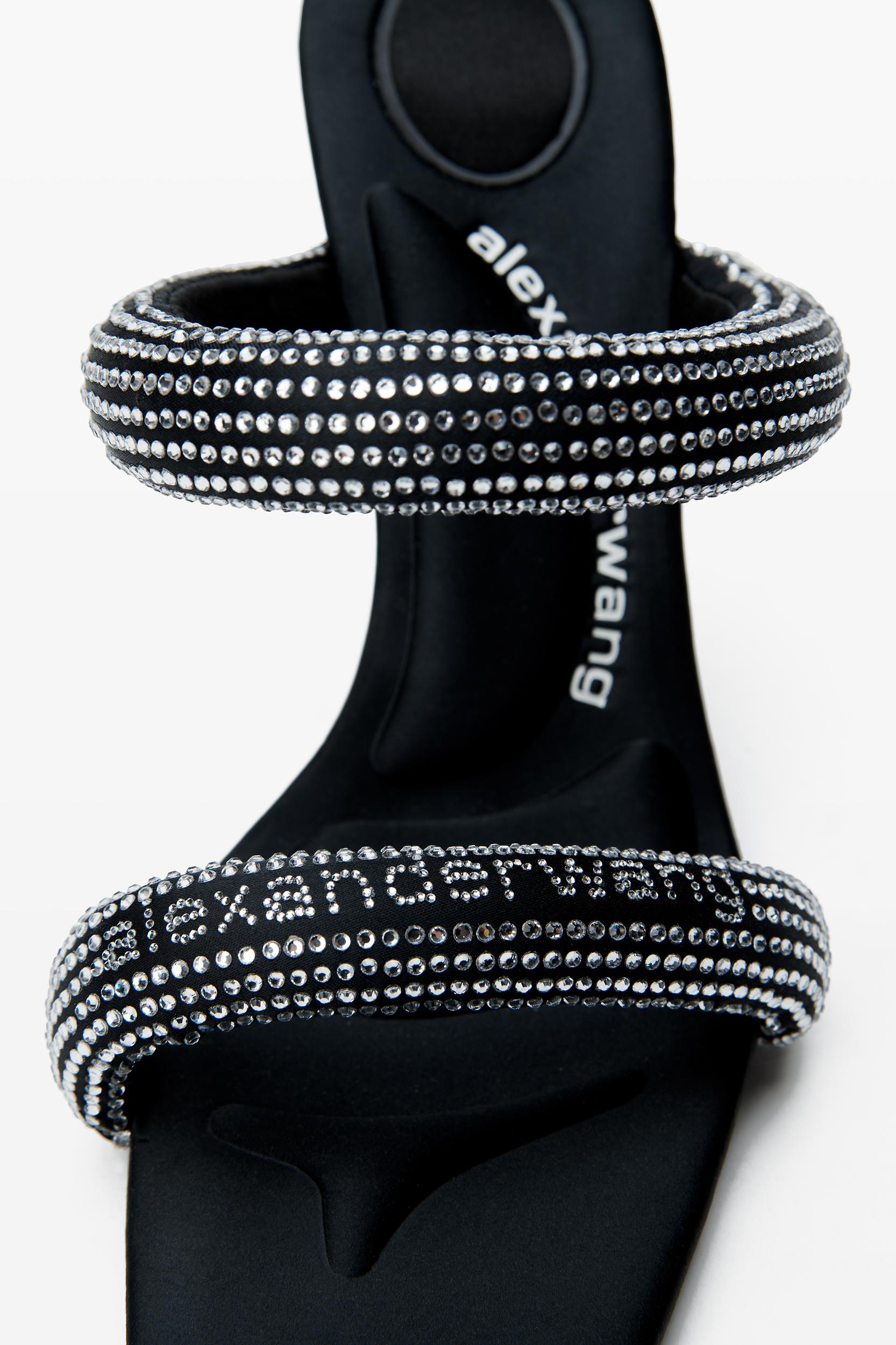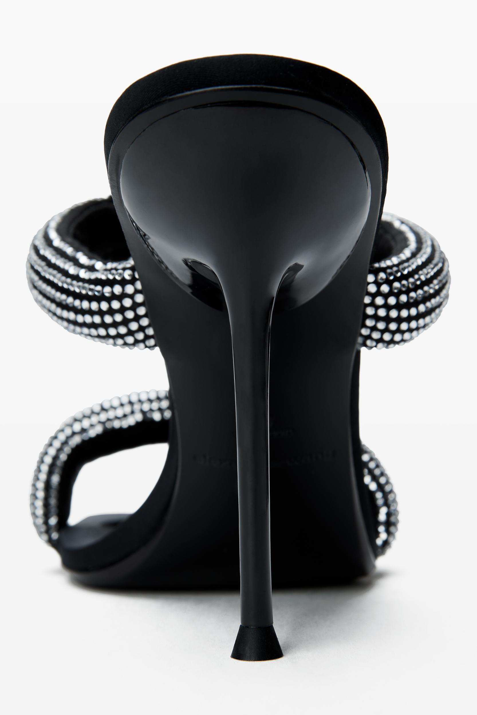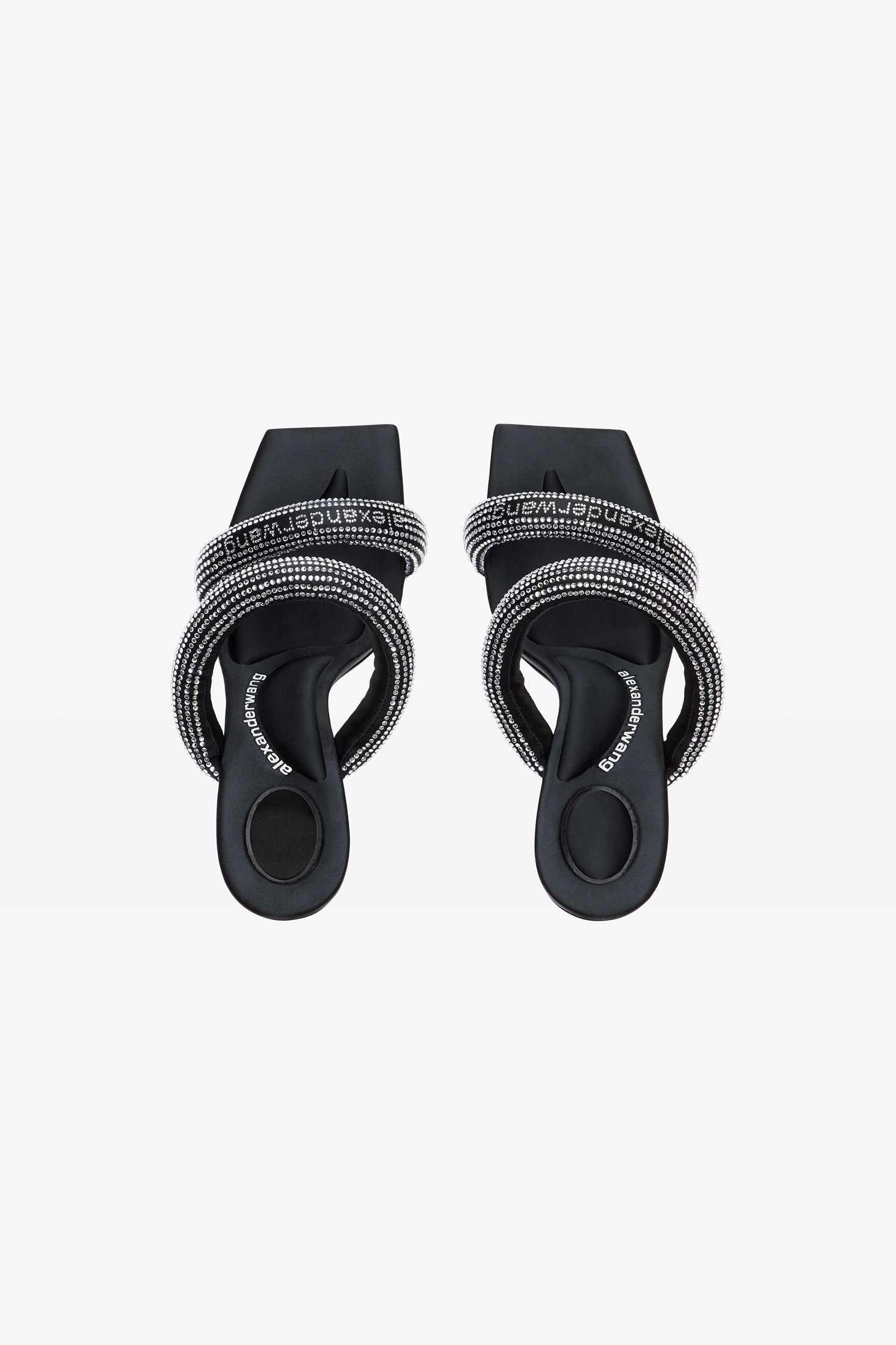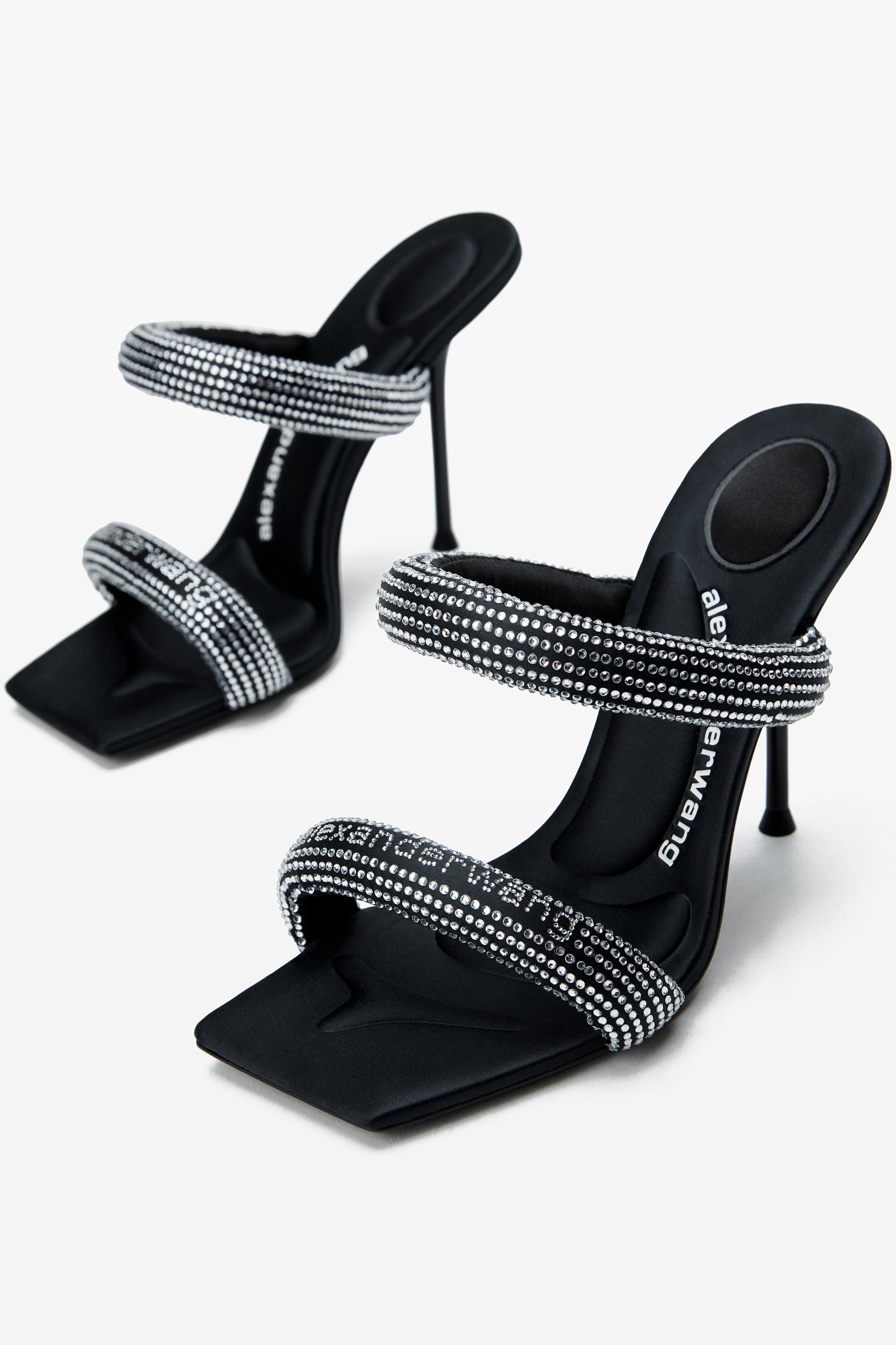 with their leather tubular straps, these julie sandals spotlight satin tubular straps adorned with allover crystal hotfix. they're set atop 105mm stiletto heels and feature signature high-frequency footbeds and cow leather outsoles.