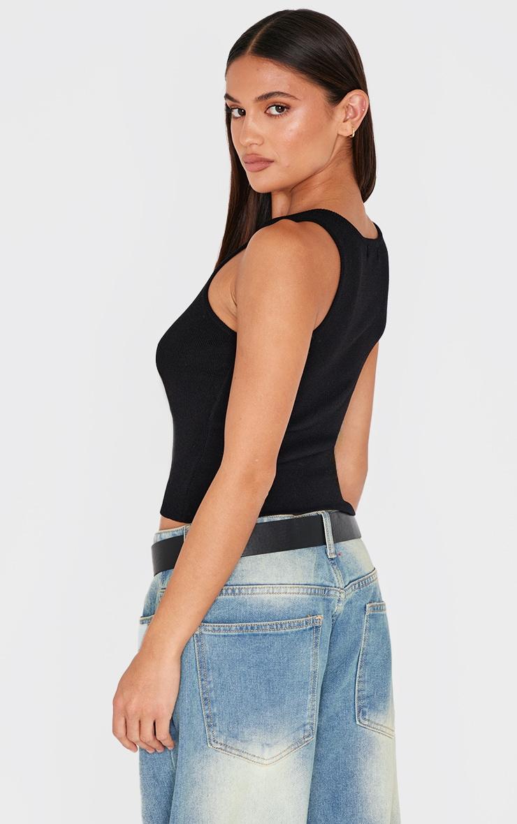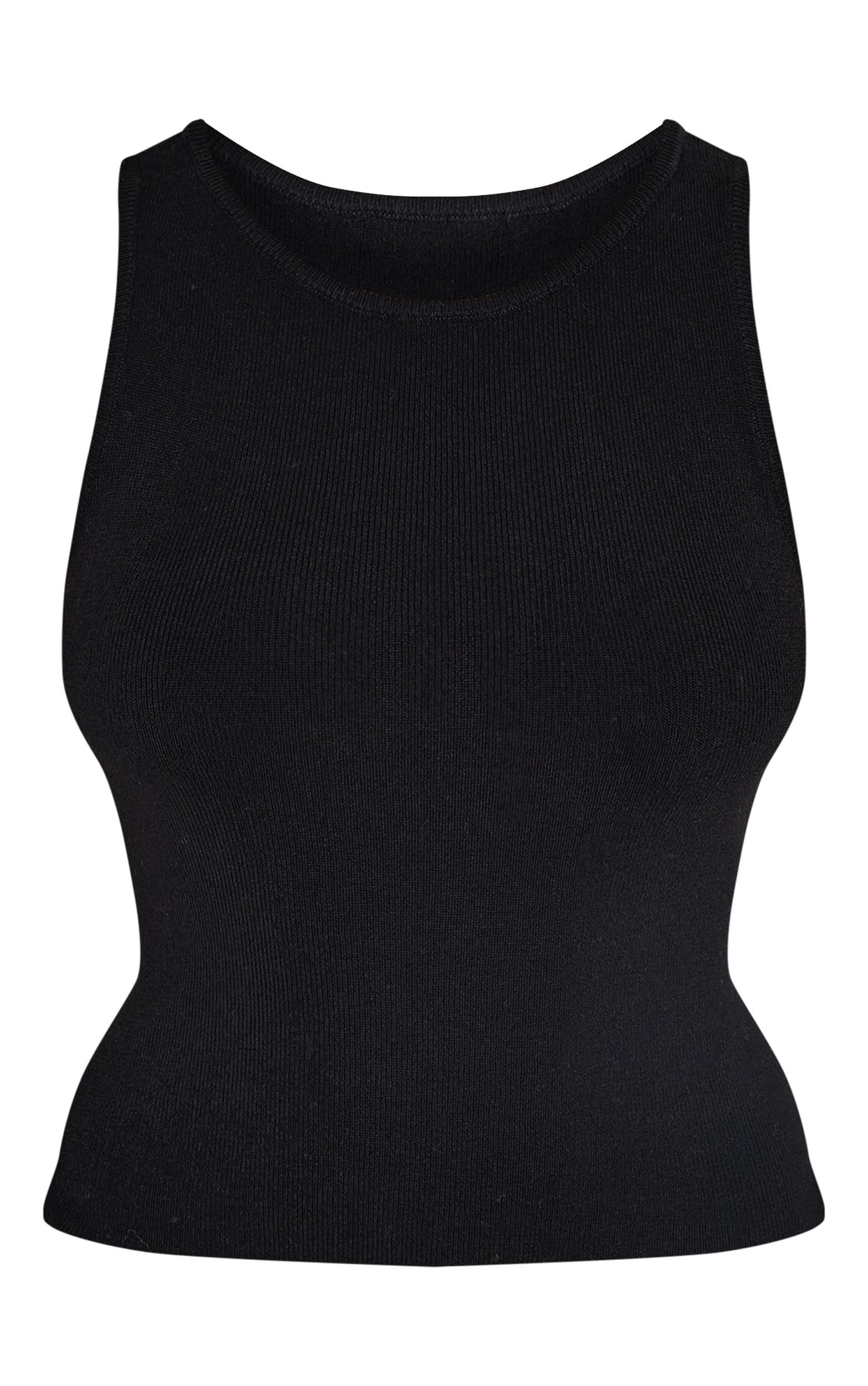 The foundation of an elevated capsule wardrobe begins here. This fine knit racer neck top in classic black offers a streamlined silhouette crafted for versatile styling. The high racer neckline lends a refined edge, while the close-fitting knit ensures a smooth, flattering fit. Consider it your go-to layering piece or wear solo for minimalist appeal. We suggest pairing it with tailored pants from our bottoms collection for a contemporary take on understated elegance.Length approx 48.5cm/19inch (Based on sample size S)Model wears size SModel Height - 5ft 6inchp]:!mb-4inch>Brand: PrettyLittleThingCategory: KnitwearProduct type: Vest TopColor: BlackMaterial: KnitNeckline: RacerSleeves: ShortOccasion: Day