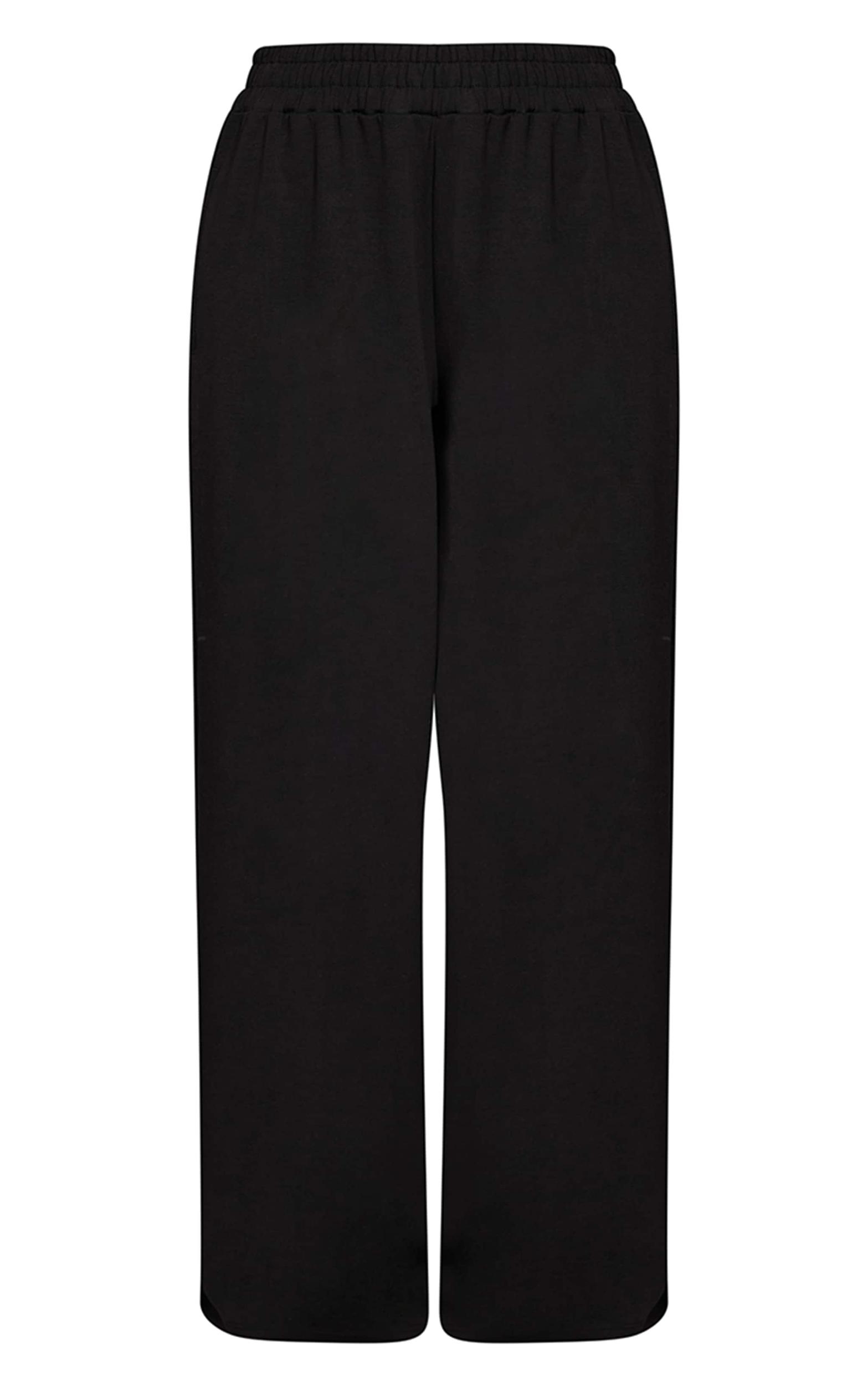 Define your off-duty look with the black interlock extreme wide leg sweatpants. Crafted from interlock material, they feature an extreme wide-leg cut for a modern silhouette. Ideal for confident daily styling, from running errands to unwinding. Style with the coordinating cropped hoodie and sleek sneakers for an effortlessly cohesive ensemble.Length approx 76cm/30inch (Based on sample size S)Model wears size SModel Height - 5ft 7inchp]:!mb-4inch>Brand: PrettyLittleThingCategory: AthleisureProduct type: Wide Leg JoggersColor: BlackMaterial: Cotton JerseyOccasion: Day