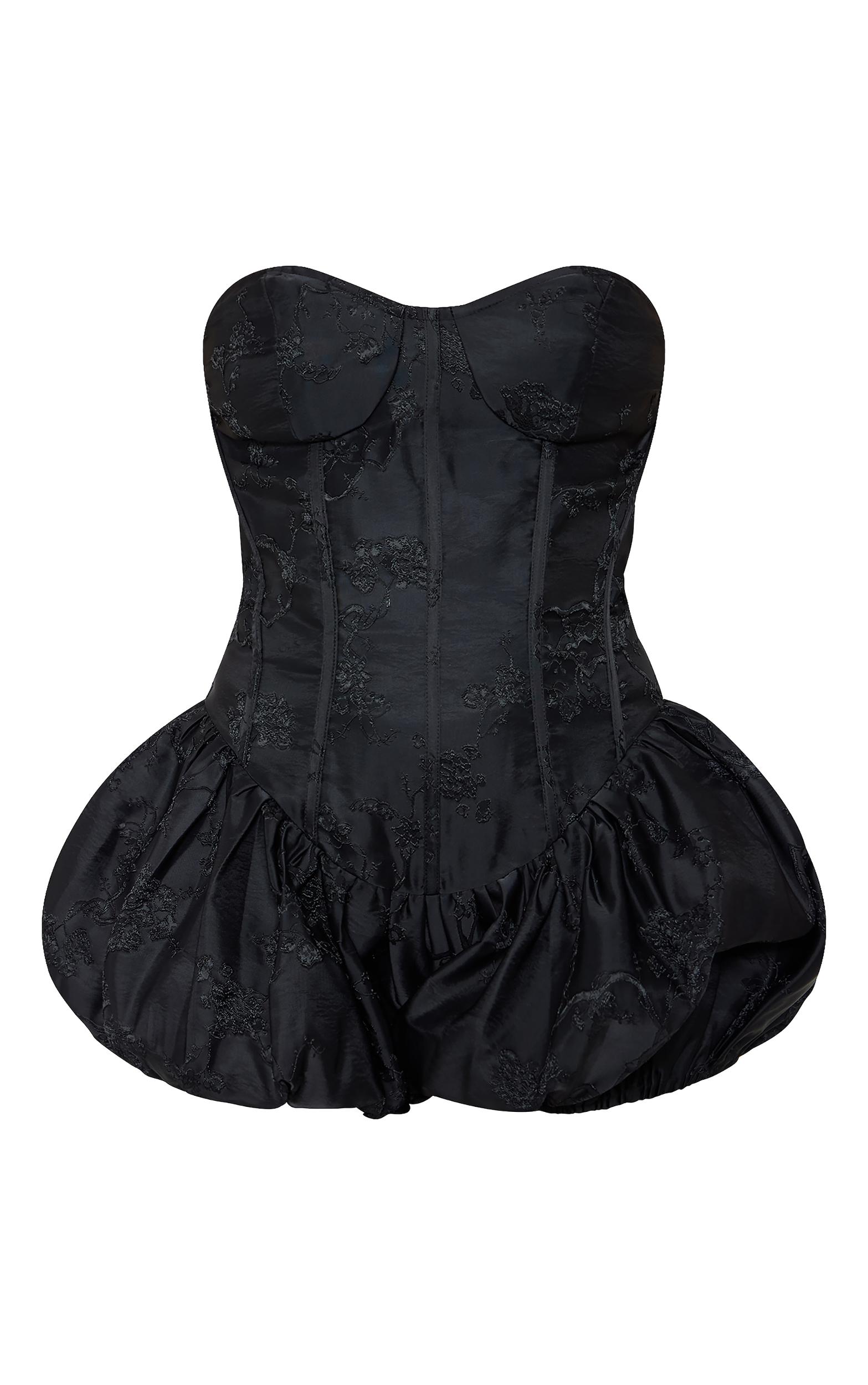 This season calls for considered after-dark silhouettes. Embrace the Graphic texture of this black jacquard puffball romper, a masterclass in modern occasion dressing. The subtly raised jacquard weave lends depth and intrigue to the classic black hue, while the sculptural puffball design offers a contemporary take on evening proportions. Style yours with delicate chain jewelry for a subtly elevated take on night-out dressing. Length approx 58cm/23inch (Based on a sample size UK 8) Model wears size UK 8/ EU 36/ AUS 8/ US 4Model Height - 5ft 9inchp]:!mb-4inch>Brand: PrettyLittleThingCategory: DressesProduct type: Floaty PlaysuitColor: BlackMaterial: Woven CrepeDesign: PlainNeckline: BandeauSleeves: BandeauOccasion: Evening