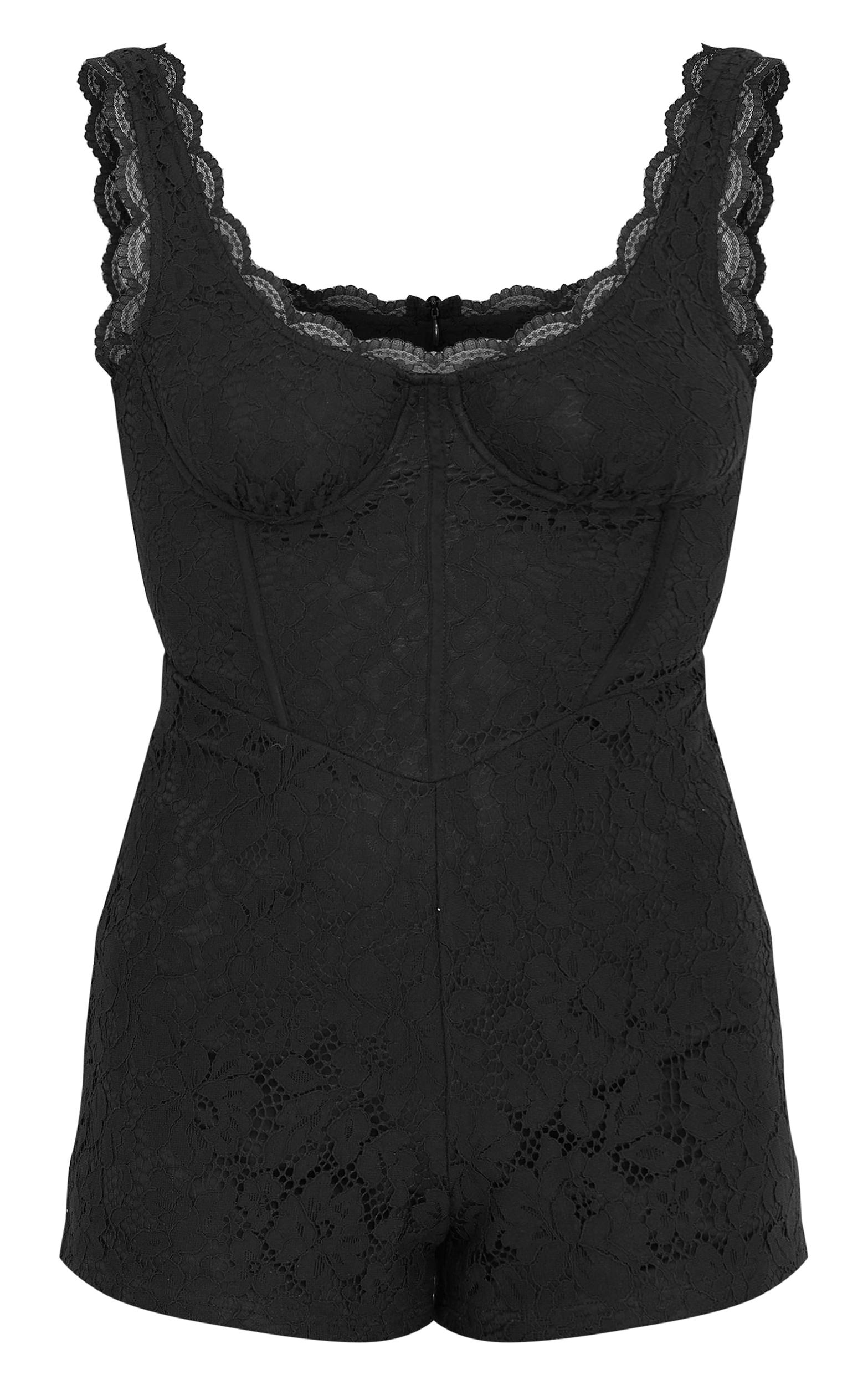 Dare to stand out from the crowd in this dreamy black lace boning detail strappy romper. With a black material with lace detailing and a strappy design, you're sure to be earning all the compliments in this romper. Just add slip-on heels and accessories for a look that is totally on trend. Length approx 79cm/31inch (Based on a sample size UK 8) Model wears size UK 8/ EU 36/ AUS 8/ US 4Model Height - 5ft 8inchp]:!mb-4inch>Category: DressesProduct type: UnitardColor: BlackMaterial: Woven LaceOccasion: Evening