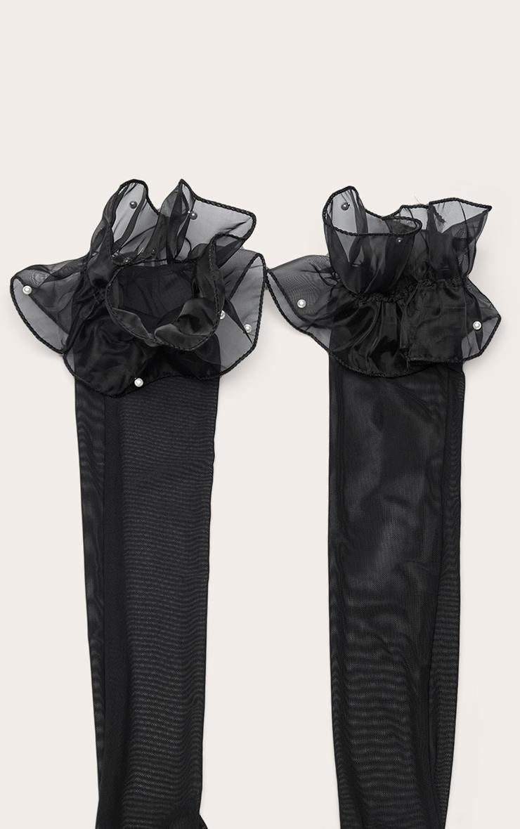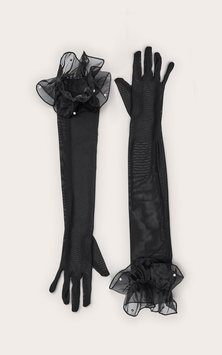 Keep it playful with the black mesh pearl frill trim long gloves. Made from a black mesh material, they feature pearl detailing, frill trim accents, and a longline fit. Pair with kitten heels and gold earrings for a fool proof finish.p]:!mb-4inch>Brand: PrettyLittleThingCategory: AccessoriesProduct type: GlovesColor: BlackMaterial: MeshOccasion: Halloween