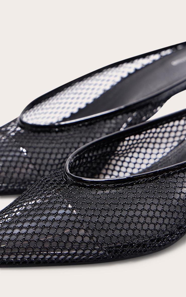No outfit of the day is complete without these black mesh point toe low heel court mules. Brought to you in a black hue mesh material with a point toe detail and a low heel, these court mules are at the top of our wish list. Simply add to your evening look for instant style points. It's a yes from us. PU Slip On 2inch Heel p]:!mb-0inch>Category: FootwearProduct type: Heeled MulesColour: BlackOccasion: Evening