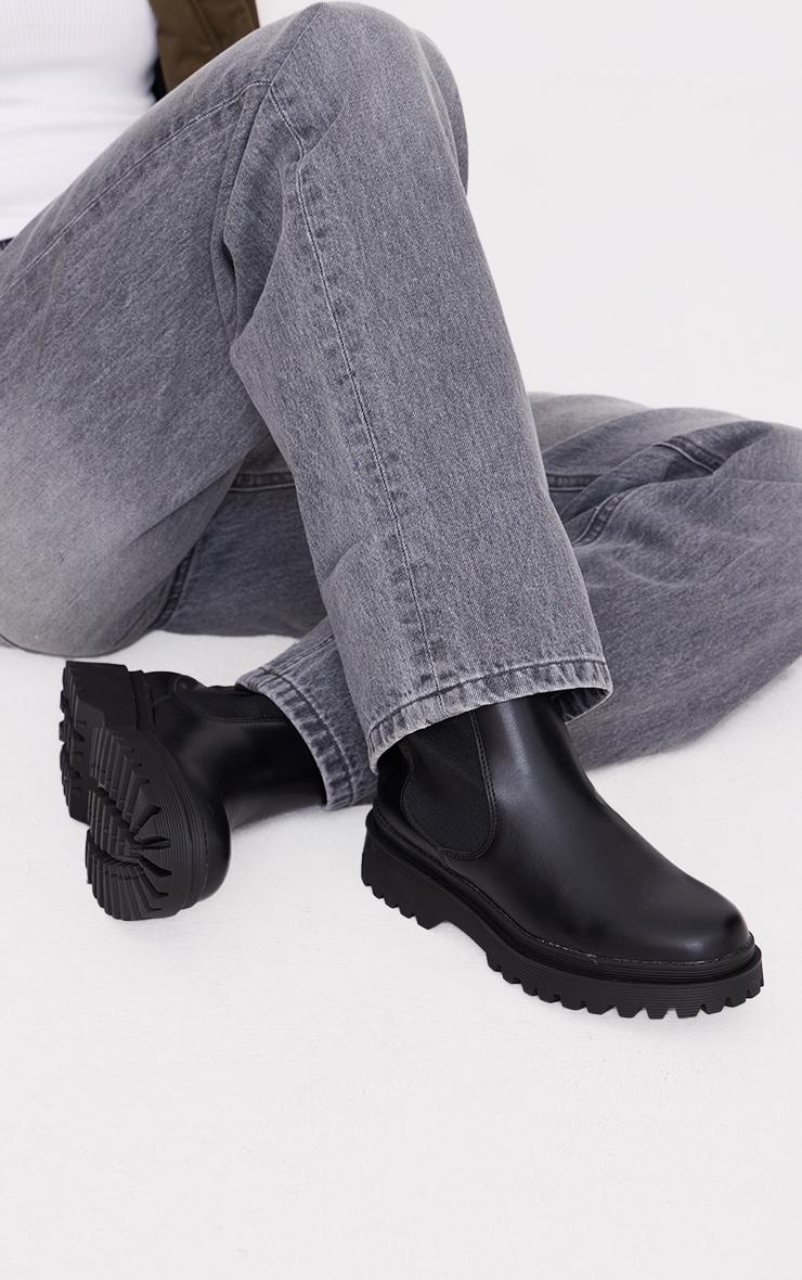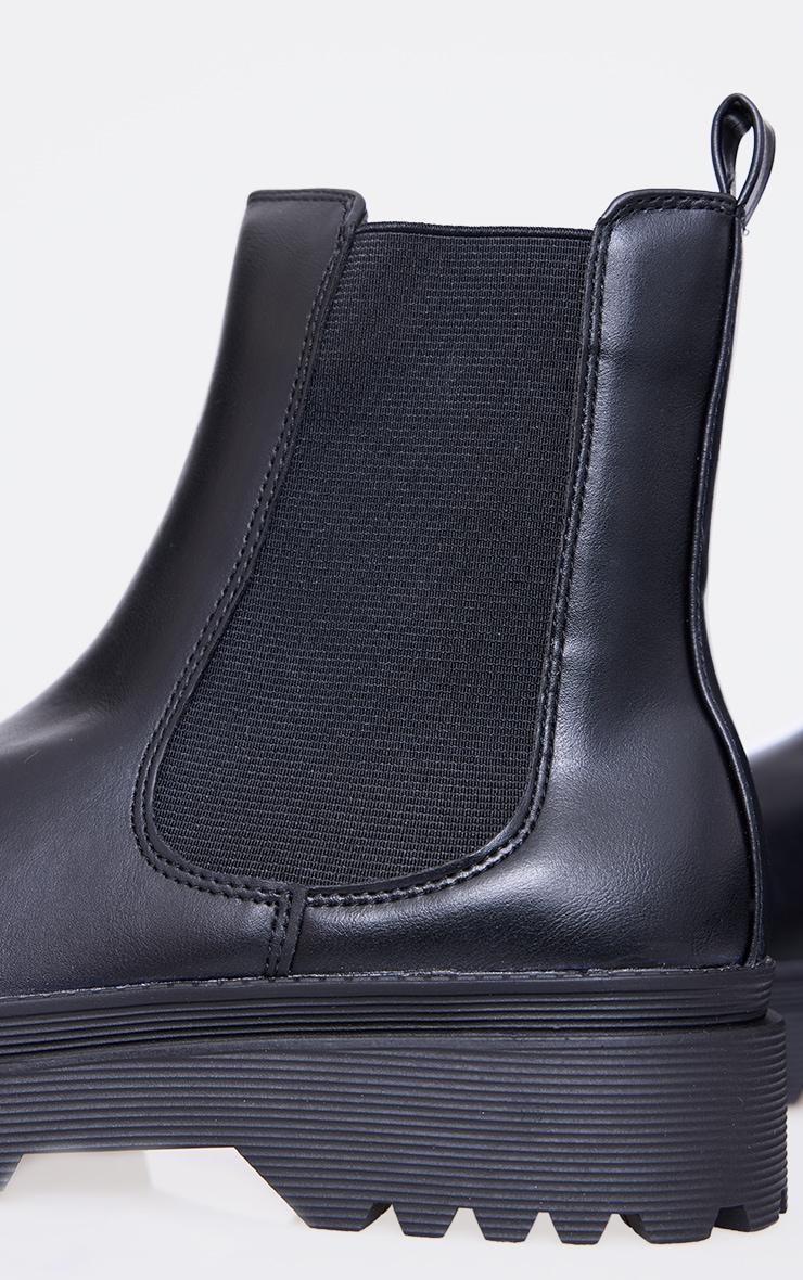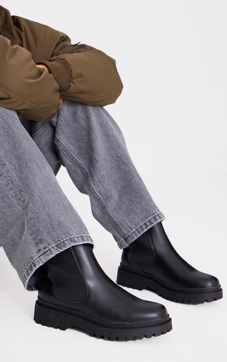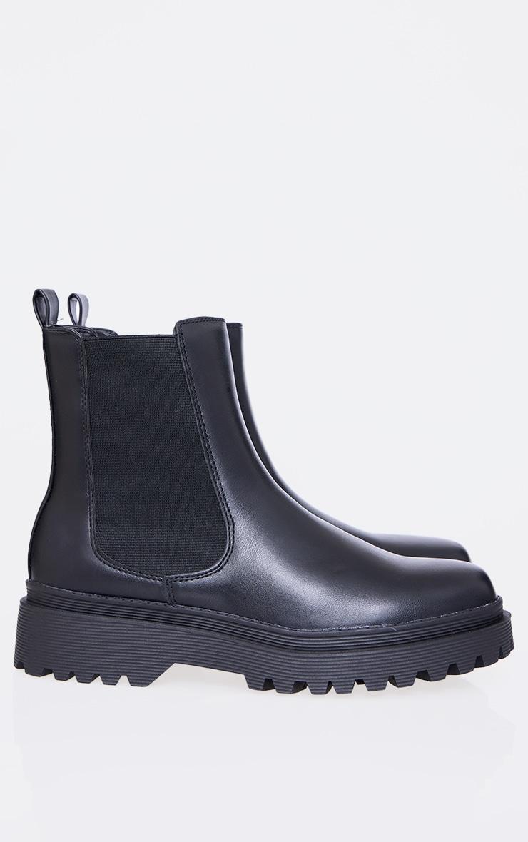 Black Pu Round Toe Chelsea Ankle Boots