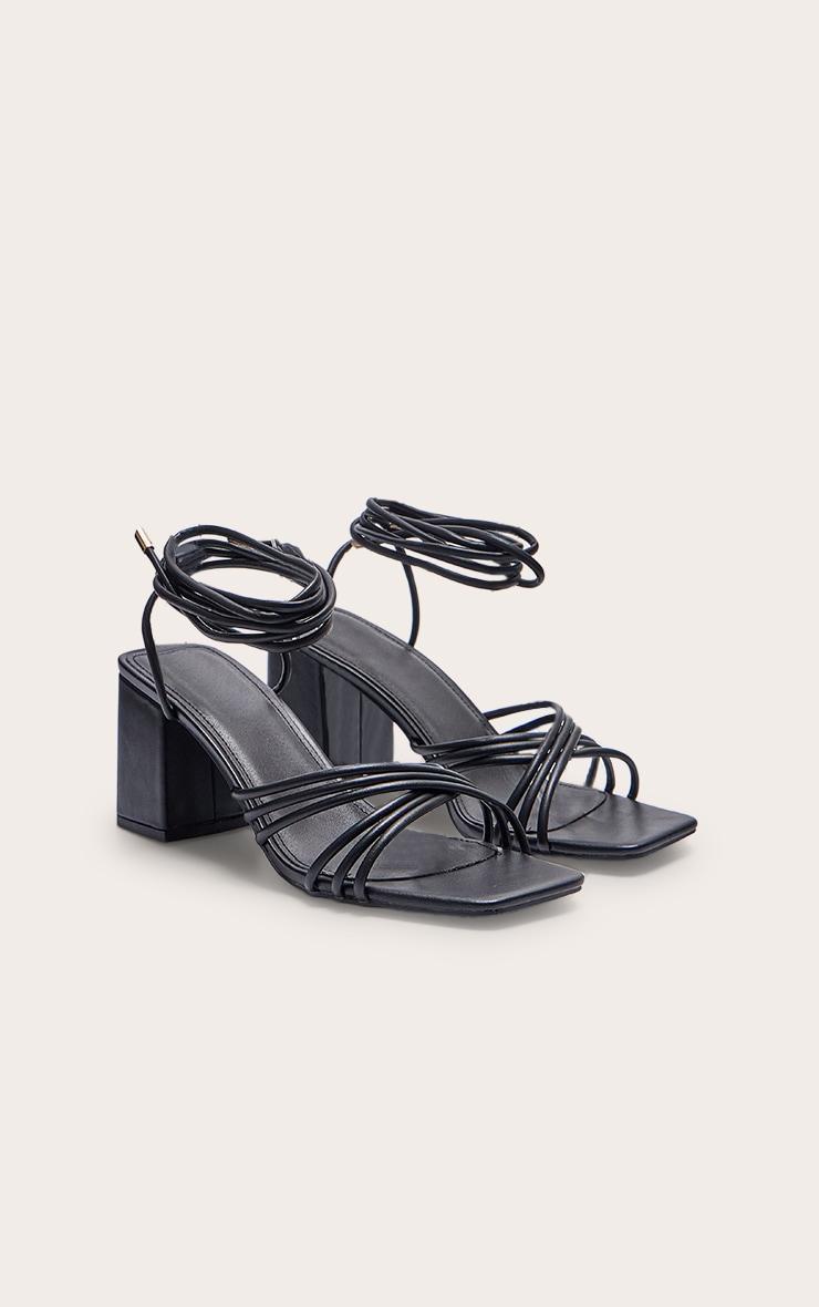 These black pu square multi criss cross strap block heeled tie up sandals are sure to add some drama to your new season wardrobe. These black heels are made from a PU material with a square design for a versatile look you will be loving. With a multi criss cross strap, these block heeled sandals are perfct for pairing with your evening outfit, it's a yes from us. PU Tie-Up 3inch Heelp]:!mb-0inch>Category: FootwearProduct type: Heeled SandalsColor: BlackOccasion: Day