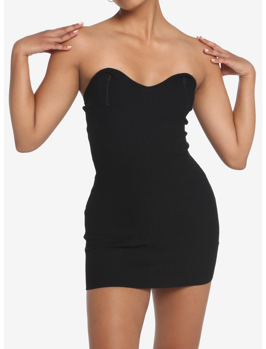 This lil' number is the epitome of the little black dress! You'll feel extra spicy as you strut your stuff wearing it. Comes with a bodycon fit and a strapless sweetheart neckline.78% rayon; 22% polyesterWash cold; dry lowStretchy materialLength: 25''ImportedListed in junior sizesModel wears size Small