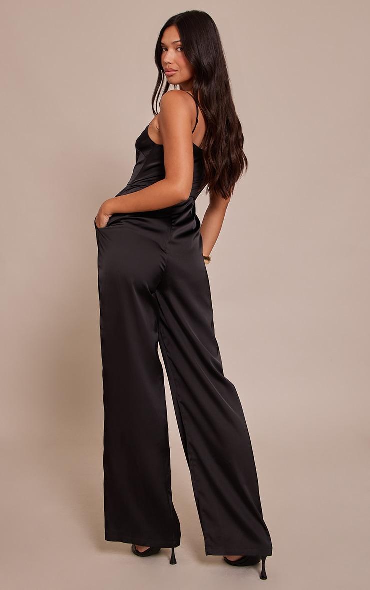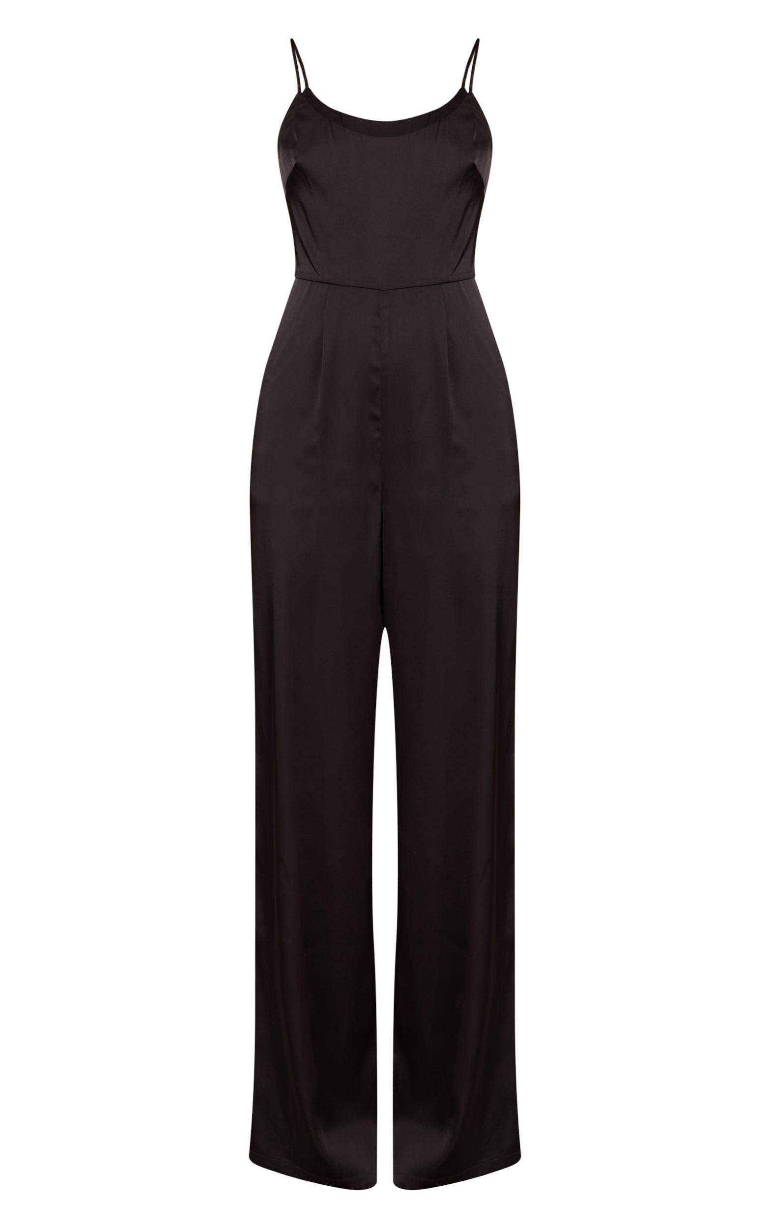 Keep it refined with the black satin scoop neck straight leg jumpsuit. Designed in a black satin fabric, this jumpsuit features a scoop neckline, fitted bodice and straight leg cut for a sleek finish. Pair with gold accessories and heels for an occasion-ready fit. Length approx 155cm/61inch (Based on sample size US 4)Model wears size UK 8/ EU 36/ AUS 8/ US 4Model Height - 5ft 9inchp]:!mb-4inch>Brand: PrettyLittleThingCategory: DressesProduct type: Wide Leg JumpsuitColor: BlackMaterial: SatinOccasion: Evening