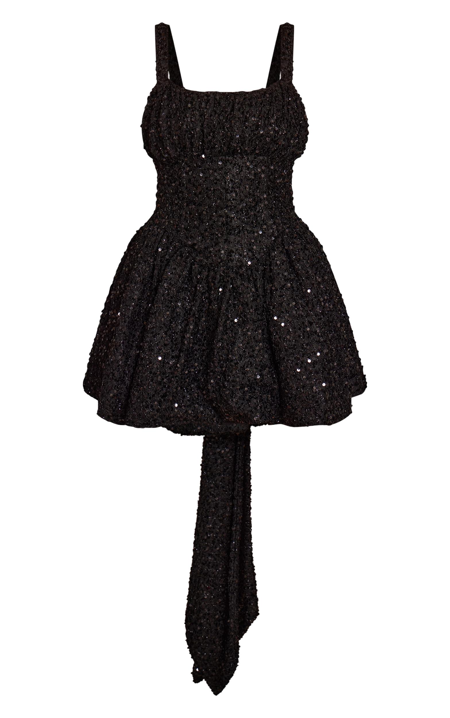 Make an entrance with a knowing shimmer that truly captivates. The black sequin oversized bow shift dress delivers an undeniable allure, presenting a chic square neckline and full sequin embellishment across its relaxed shift cut. This confident mini-length silhouette is artfully completed by an oversized bow detail cascading down the back, ensuring an unforgettable exit. Elevate your occasionwear by pairing this piece with elegant black kitten heels and subtle pearl earrings, finishing with a sleek clutch bag for an undeniably polished aesthetic.Length approx 81.5cm/32inch (Based on sample size US 4)Model wears size UK 8/ EU 36/ AUS 8/ US 4Model Height - 5ft 10inchp]:!mb-4inch>Brand: PrettyLittleThingCategory: DressesProduct type: Shift DressColor: BlackMaterial: SequinOccasion: Occasion