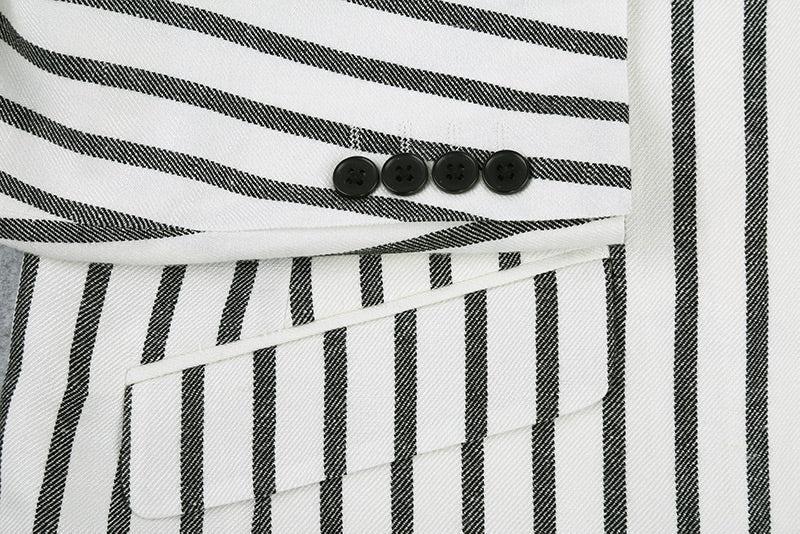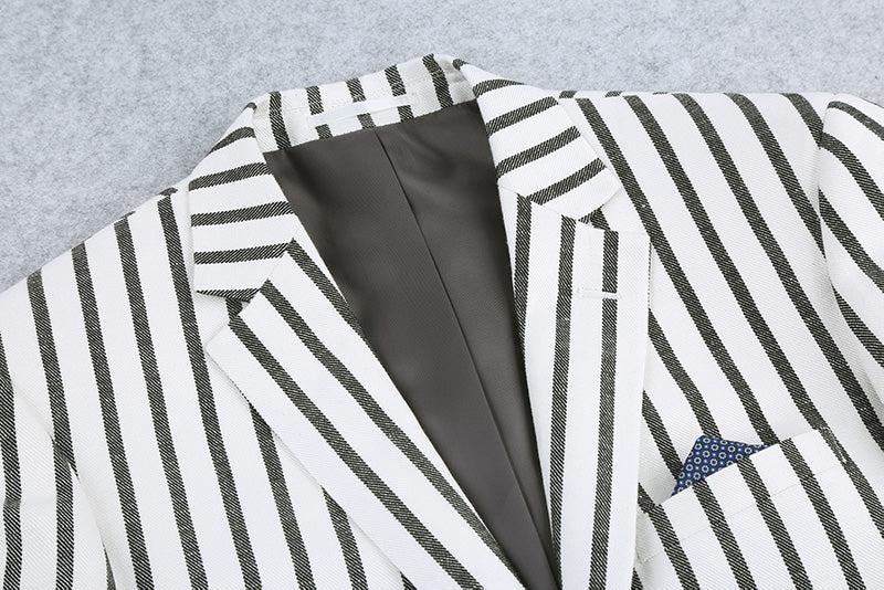 Black Striped Linen Blend Slim Fit 2 Button Blazer