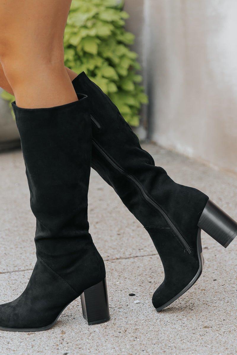 Elevate your style with these knee high boots! These Black Suede Knee High Boots boast a stylish block heel and pointed toe for both fashion and function. Made with high quality suede, these boots add a touch of sophistication to any outfit. They are also available in Beige!