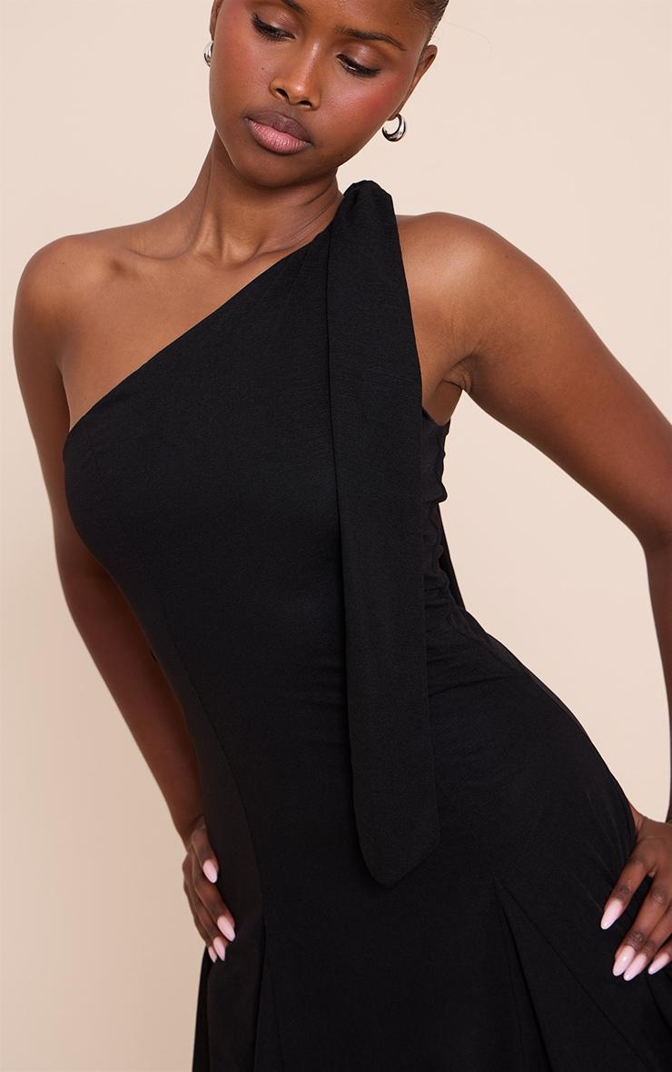 Opt for clean cuts in the black tie neck godet shift dress. Made from a black woven material, this dress features a shift silhouette with a statement tie neckline. Style with slip-on heels and gold jewelry for elegant minimalism.Length approx 81.5cm/32inch (Based on sample size US 4)Model wears size UK 8/ EU 36/ AUS 8/ US 4Model Height - 5ft 9inchp]:!mb-4inch>Brand: PrettyLittleThingCategory: DressesProduct type: Shift DressColor: BlackMaterial: Woven CrepeNeckline: One ShoulderSleeves: SleevelessOccasion: Evening