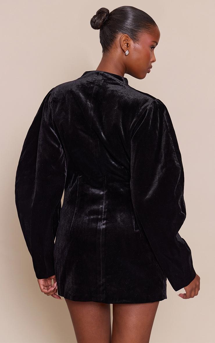 Meet the black velvet balloon sleeve blazer dress. Black velvet, a plunge neckline, and balloon sleeves shape its cut. Your go-to for standout evening events. Pair with black heels and gold earrings.Length approx 81.5cm/32inch (Based on sample size US 4)Model wears size UK 8/ EU 36/ AUS 8/ US 4Model Height - 5ft 9inchp]:!mb-4inch>Brand: PrettyLittleThingCategory: DressesProduct type: Blazer DressColor: BlackMaterial: VelvetSleeves: LongOccasion: Evening