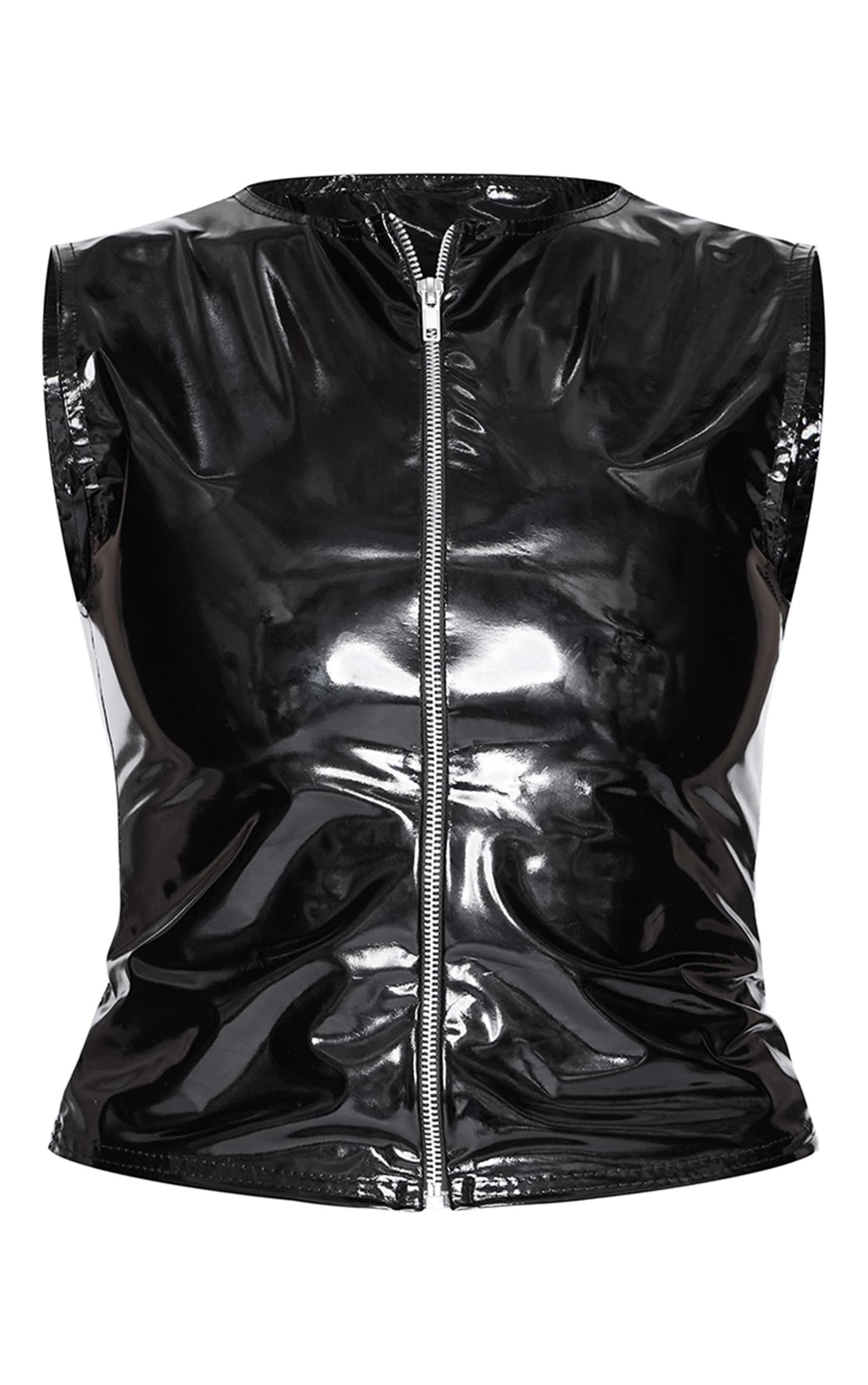 You need this black vinyl zip up sleeveless long top. Brought to you in a black vinyl material with a zip up fastening and a sleeveless design, you are sure to stand out from the rest with this long top! Team with a pair of heels and your fave accessories for a look that will earn you all the styling points this season and beyond. Length approx 48cm/19inch (Based on a sample size UK 8) Model wears size UK 8/ EU 36/ AUS 8/ US 4Model Height - 5ft 6inchp]:!mb-0inch>Category: TopsProduct type: Vest TopColor: BlackMaterial: VinylDesign: PlainNeckline: V NeckSleeves: SleevelessOccasion: Evening