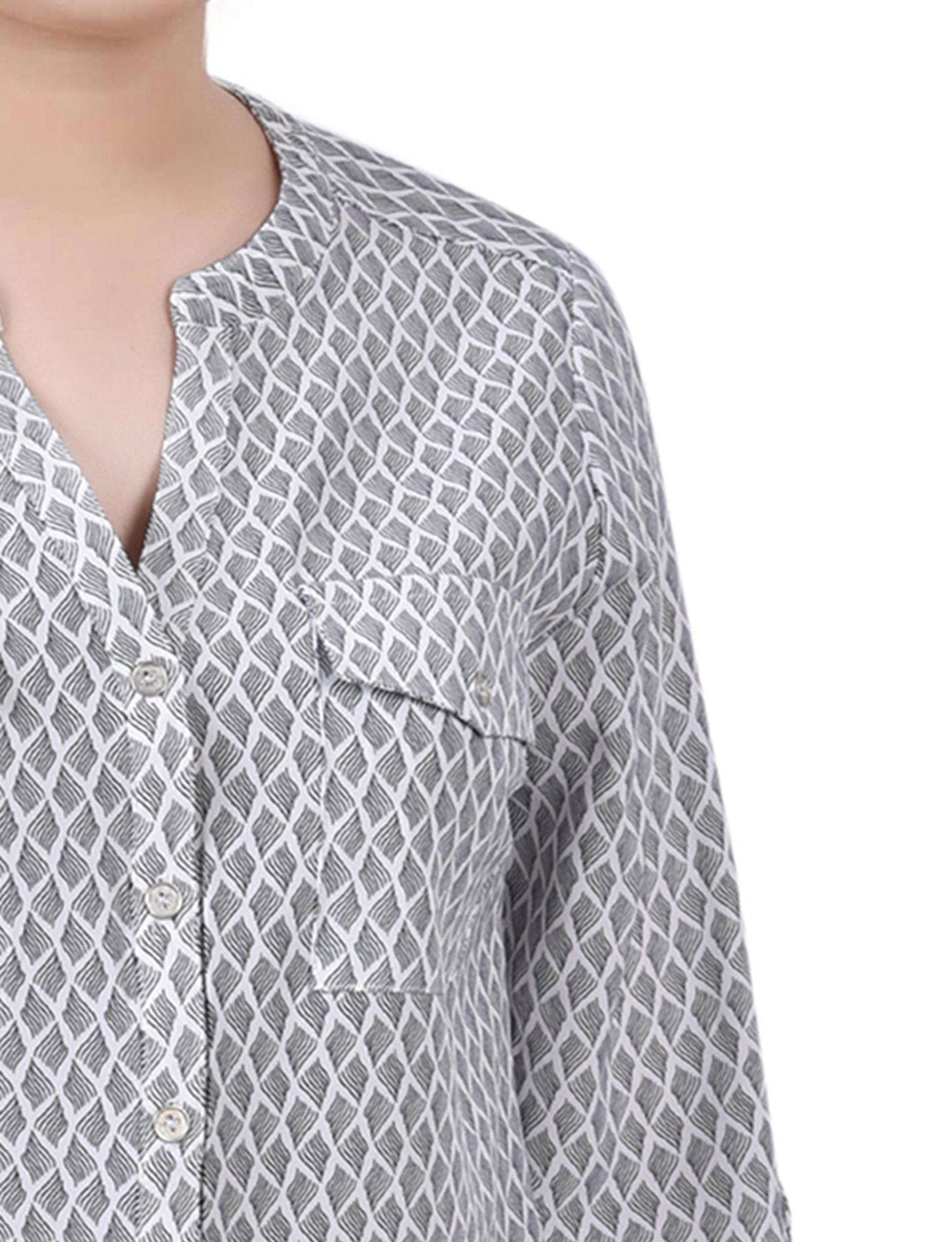 Westbound 3/4 Roll-Tab Sleeve Point Collar Y-Neck Button Front Top
