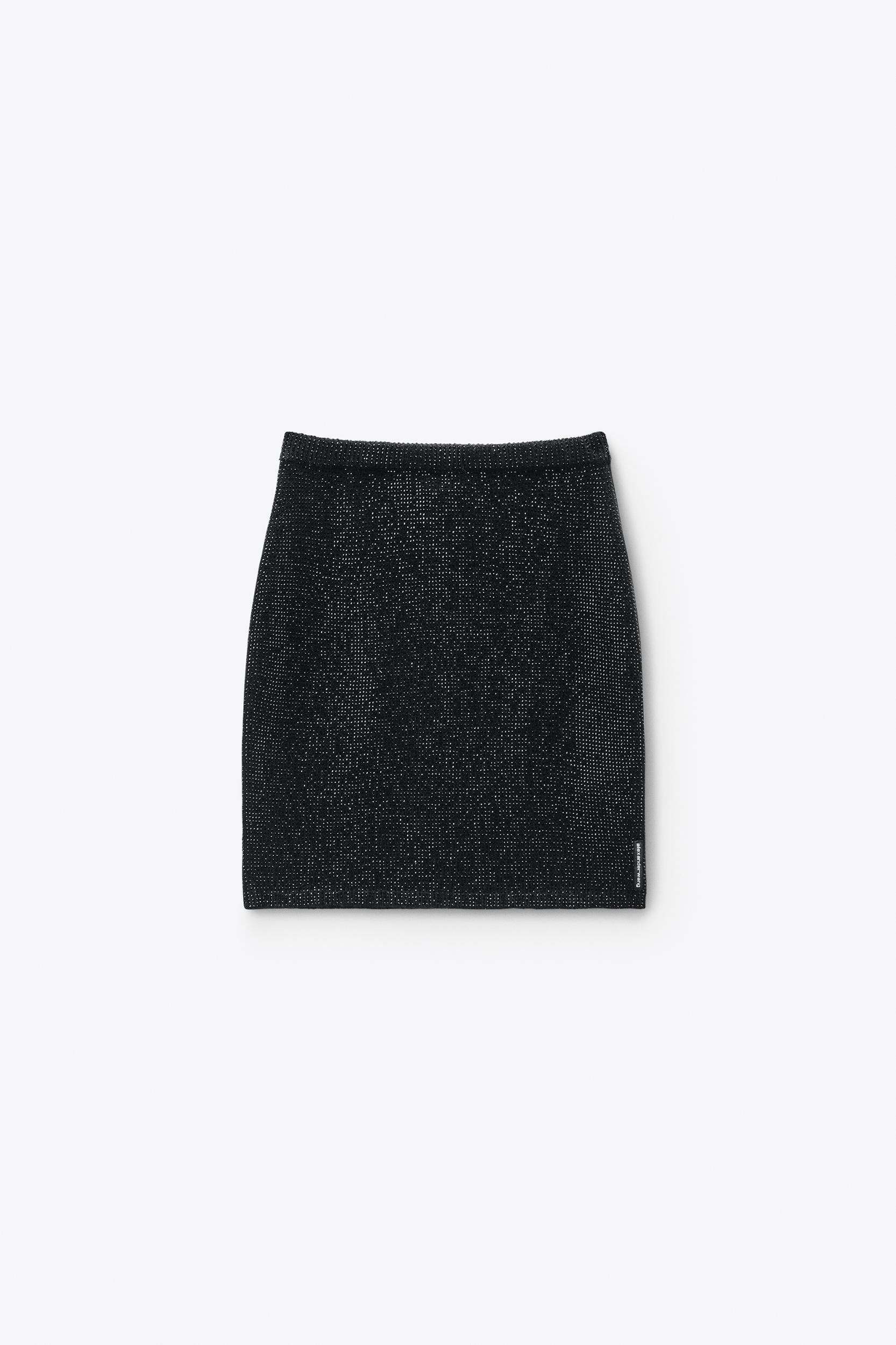 Black boiled wool ribbed tee cut in a mid-weight knit with a close, fitted silhouette. Features over 48,000 allover hotfix embellishments and classic rib trims, finished with a woven alexanderwang logo at the left side seam.
