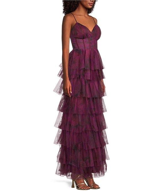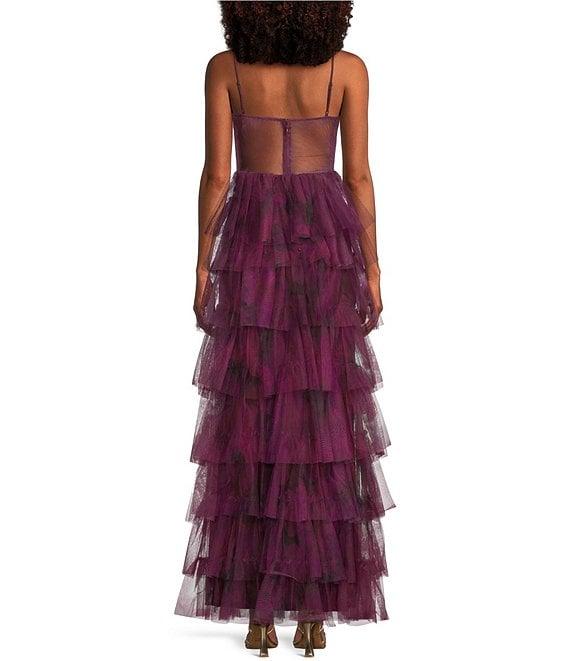 Blondie Nites Printed Mesh Tiered Ruffle Ballgown