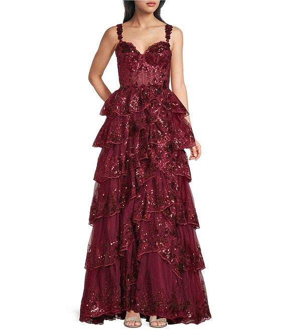 Blondie Nites Sequin Lace Sweetheart Neckline Ruffle Tiered Ball Gown