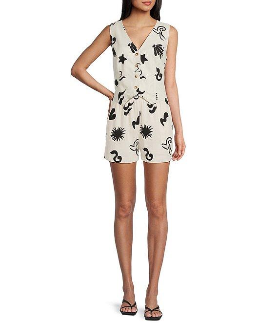 Blu Pepper Linen Blend Doodle Print Pull-On Shorts