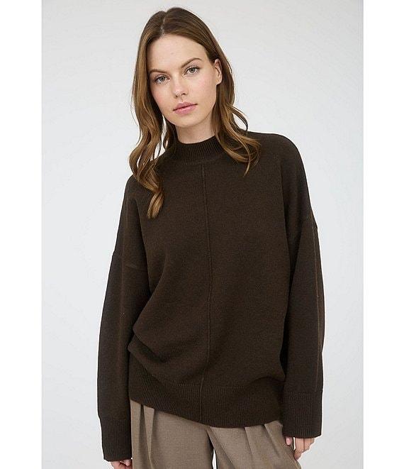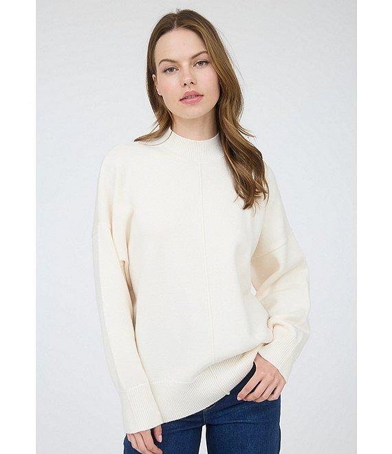From Blu Pepper, this sweater features: Solid fabric Mock neck Long sleeves Pullover styling Polyester/nylon Hand wash/dry flat Imported.