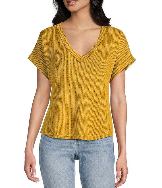 Blu Pepper V-Neck Short Sleeve Knit Sweater Top