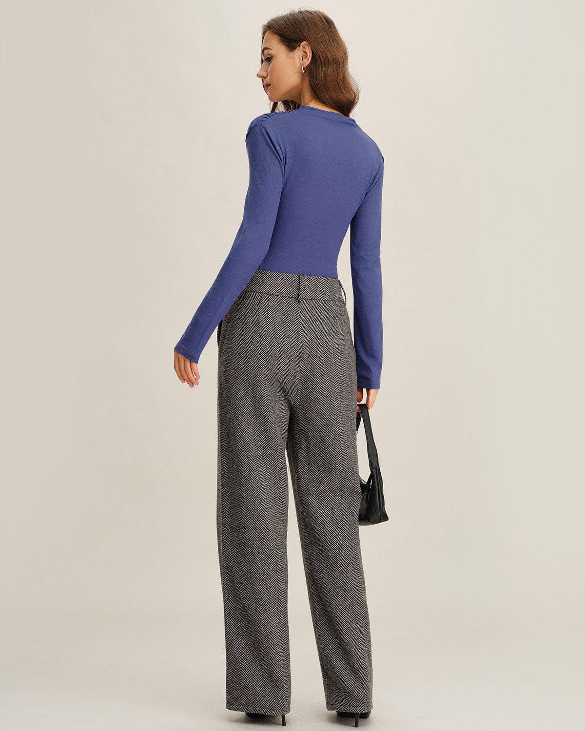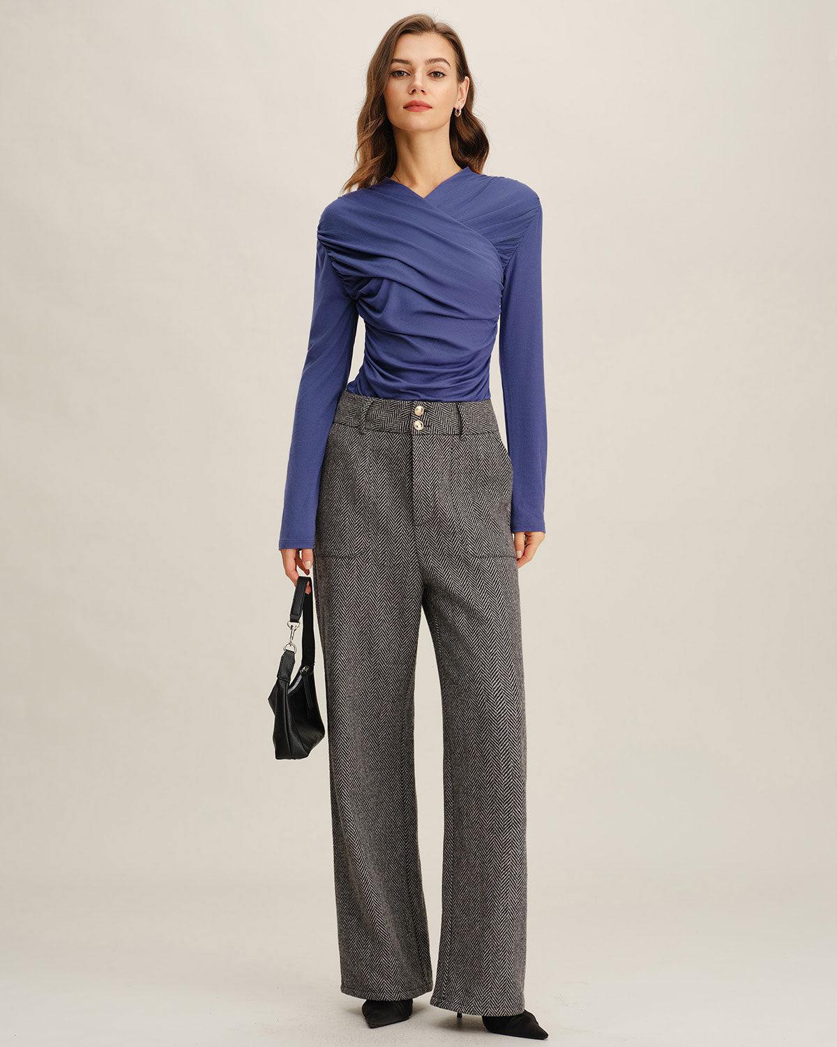 Blue Ruched Slim Knit Tee