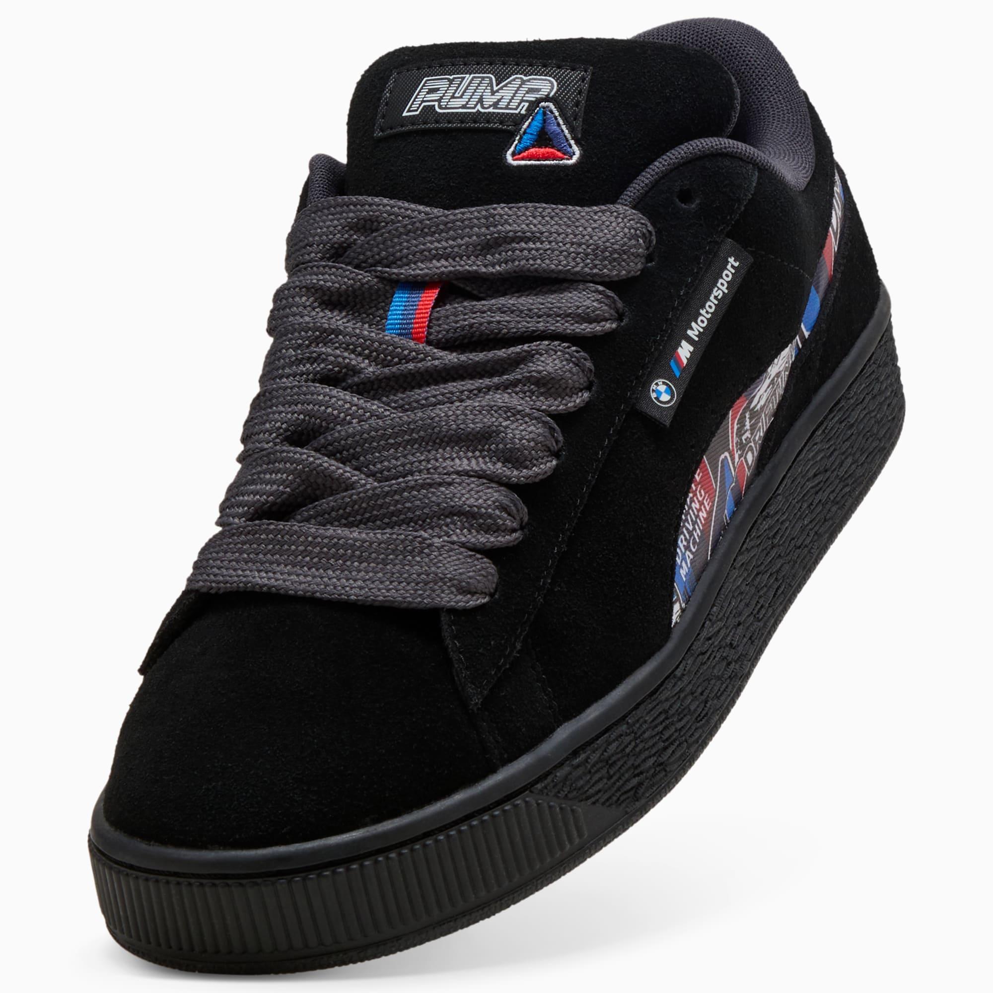 PUMA x BMW M MOTORSPORT returns with a collection inspired by the latest evolution of the BMW M4 GT4 EVO. Featuring graphics drawn from the carâs cutting-edge design and refreshed livery, this collection pays tribute to speed, precision, and innovation that continue to define this icon. FEATURES & BENEFITS The upper of the shoes is made with at least 20% recycled materials. Width: RegularToe Type: RoundedFastener: LacesHeel type: FlatLining: Textile | PUMA BMW M Motorsport Suede XL Sticker Men's Shoes in Black, Size 7.5