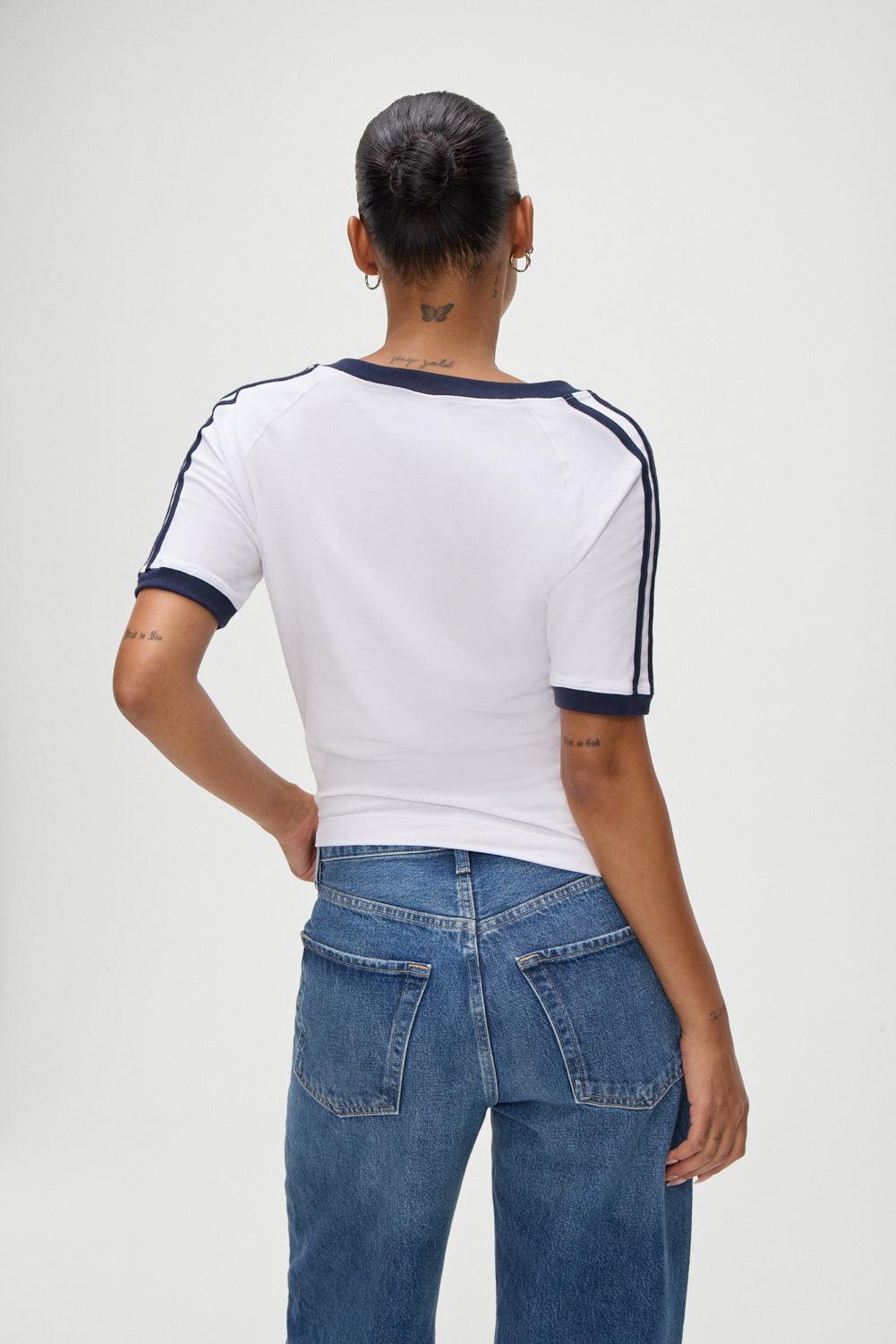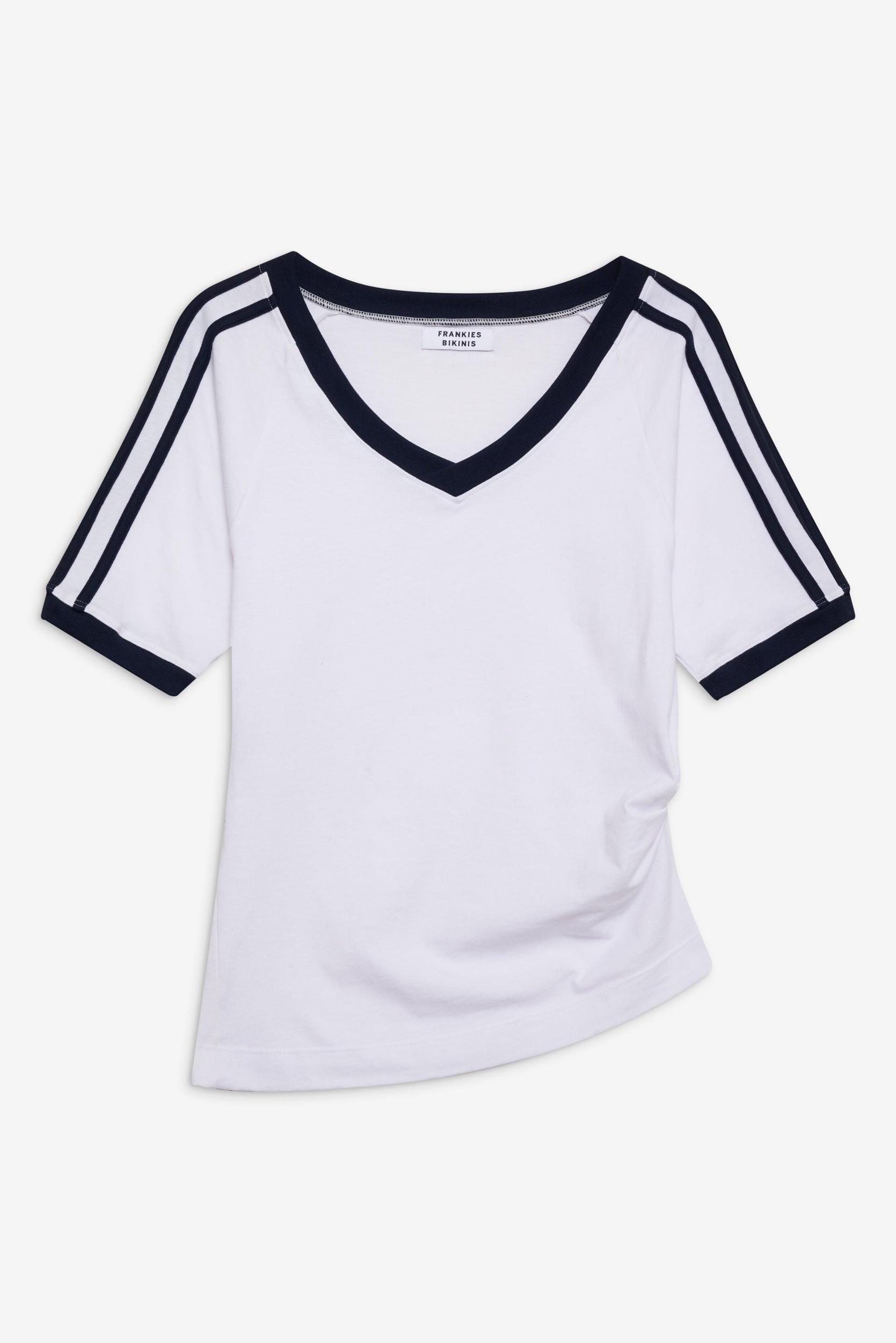 The Bodega shirt takes us back to our sporty gym class days. This statement piece features a slightly looser fit and slim short sleeves, making it easy to move in while keeping you on-trend. Details Relaxed fit V-neck design Pleated details Fabric Cotton Jersey Model Size & Fit This style runs true to size Jasmine is wearing a size Small Height 5’9” (175cm) Bust 34" (86cm), Waist 23.5" (60cm), Hips 34” (86cm)