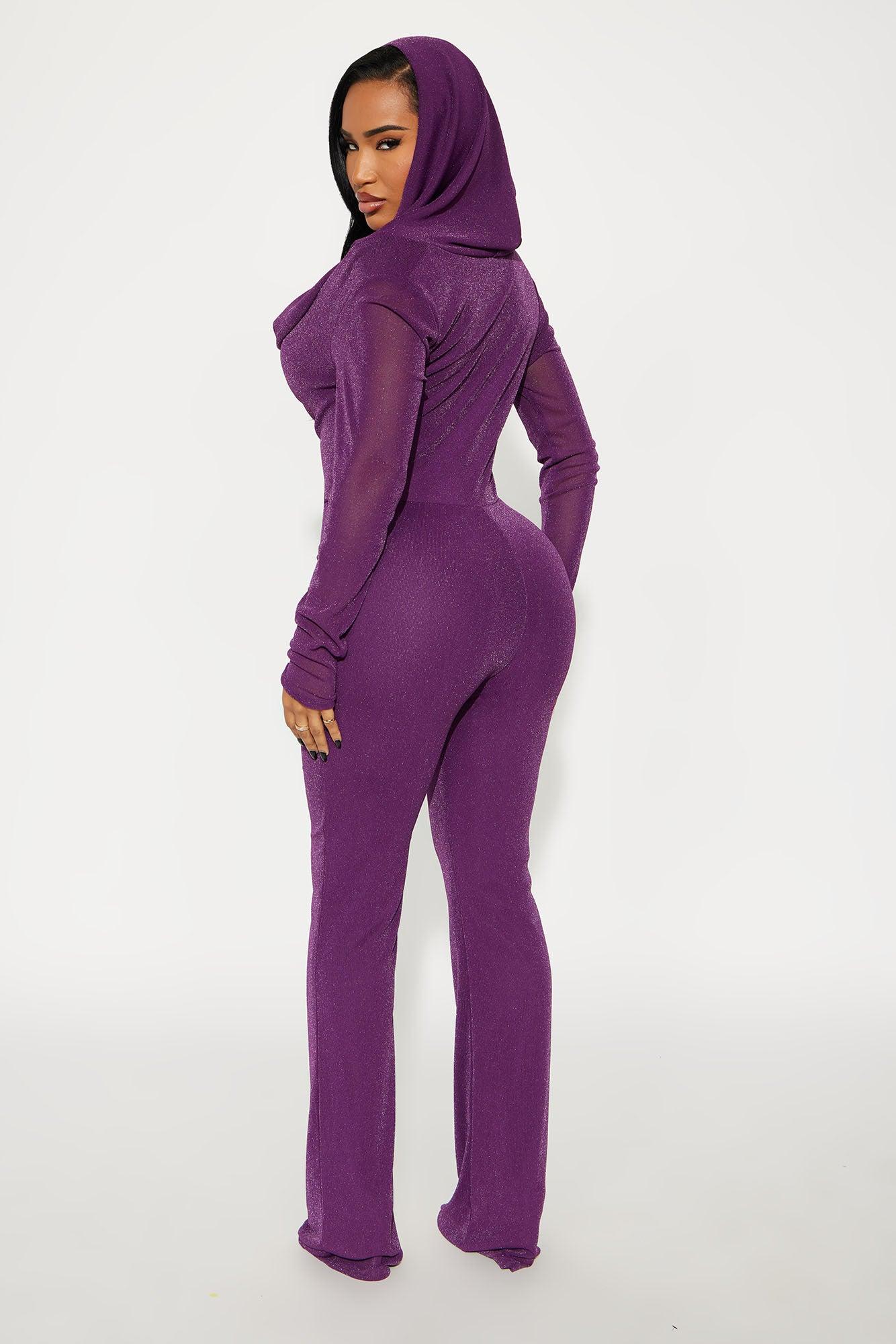 Bold Moves Hooded Slinky Jumpsuit - Purple Female