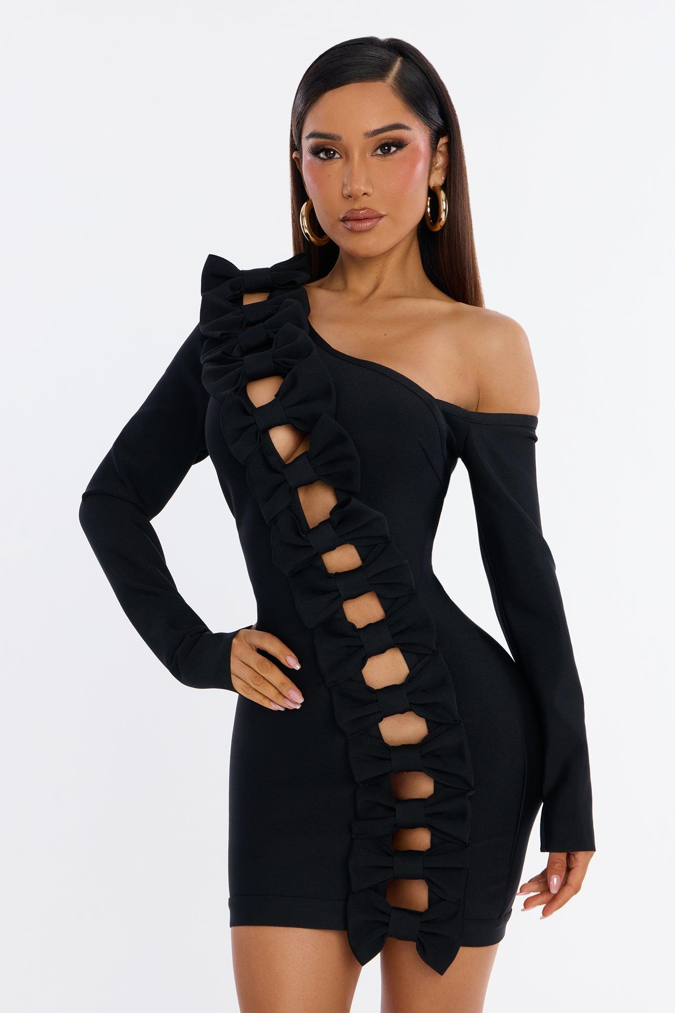 Bonnie Bow Bandage Mini Dress - Black Female
