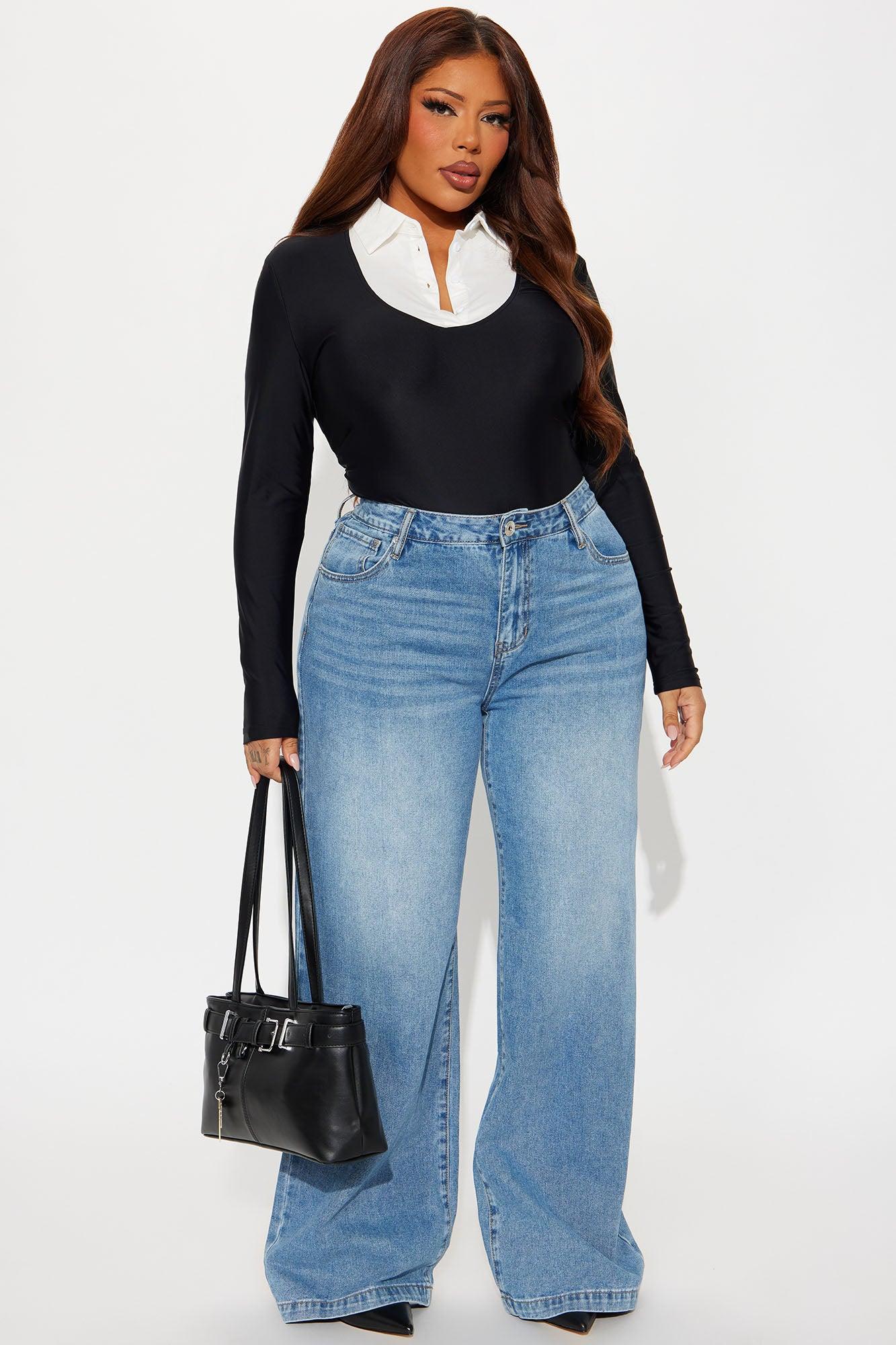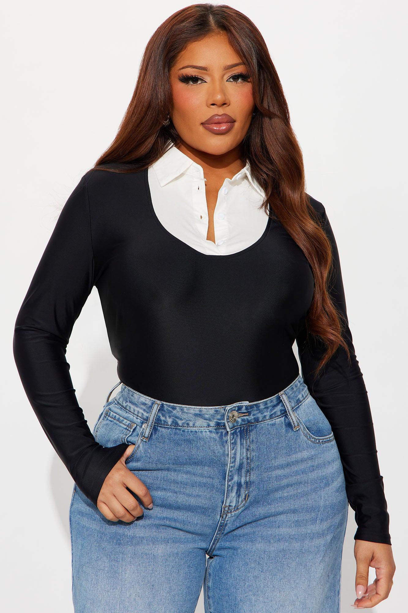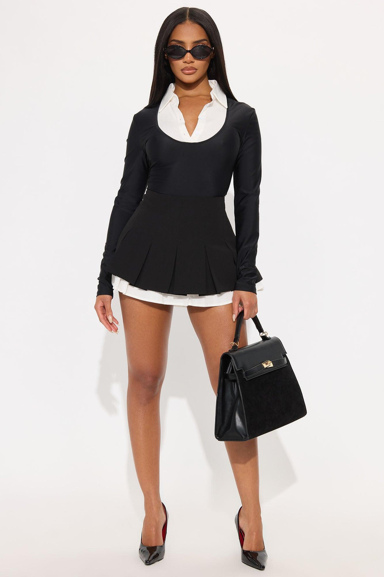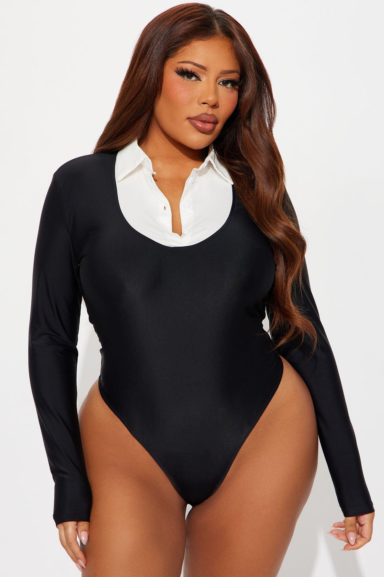 Book Worm Ribbed Collared Bodysuit - Black/combo Female