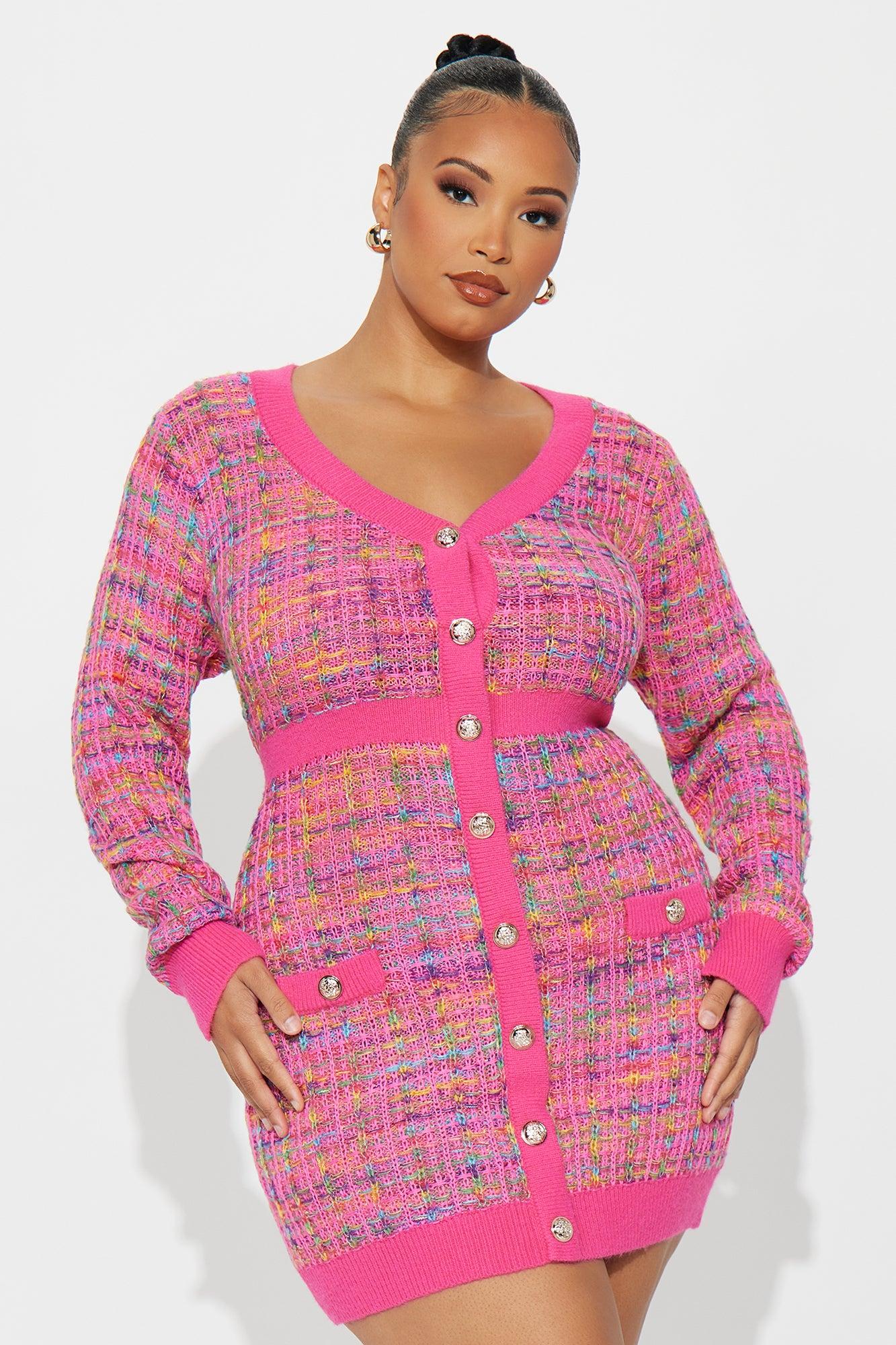 Boss Babe Plaid Sweater Mini Dress - Pink/combo Female