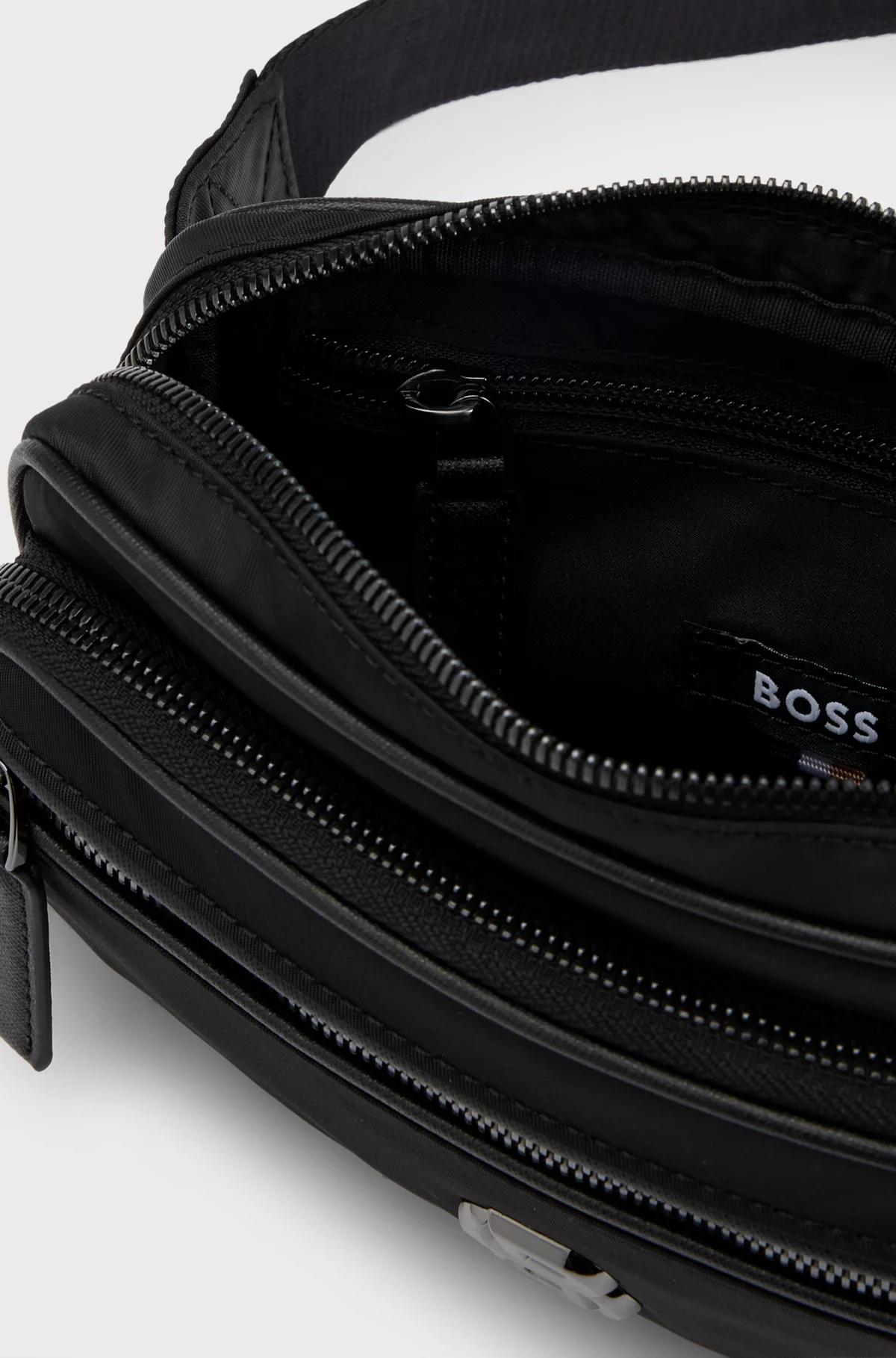 Introducing the Boss Twill Belt Bag with Double B Monogram - the perfect accessory for those who like to make a statement. Crafted with a soft twill fabric, this bag features a branded strap and Double B monogram. Plus, it's partly made with recycled materials, saving valuable resources. Zipper closure and logo plaque add the finishing touches.